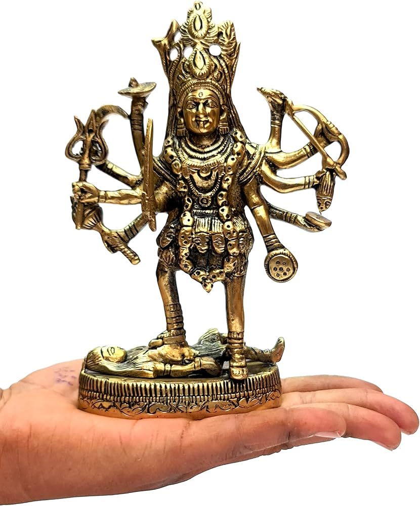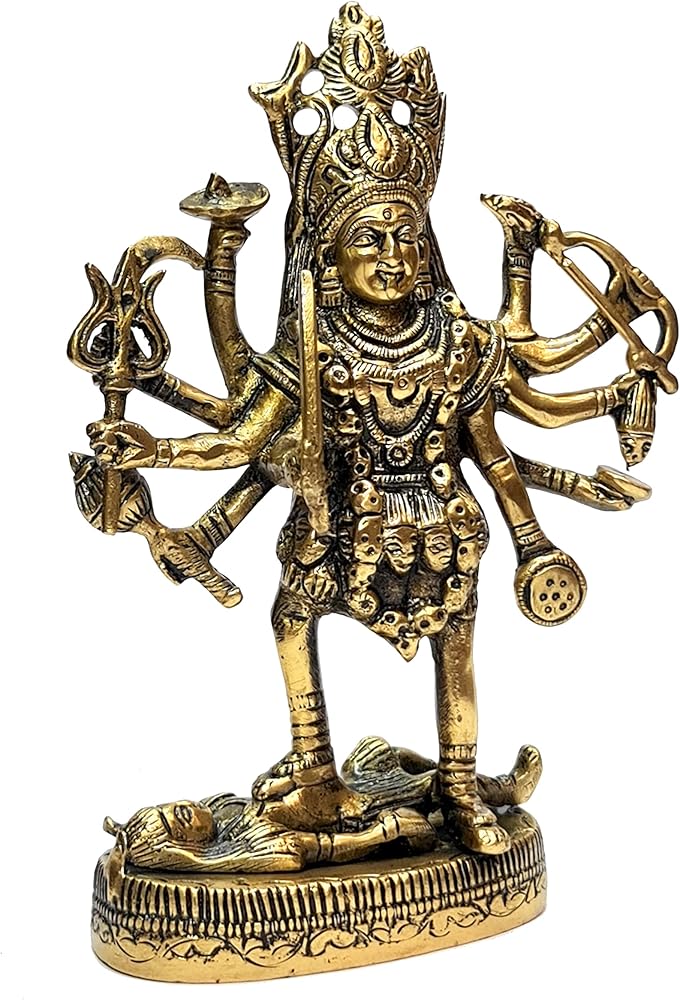 • Goddess Kali Mata statue made of using 100% solid Brass for your Home / Workplace / Office / Desk / Counter etc.