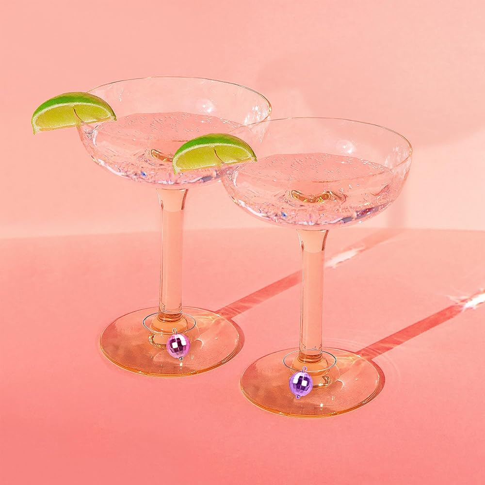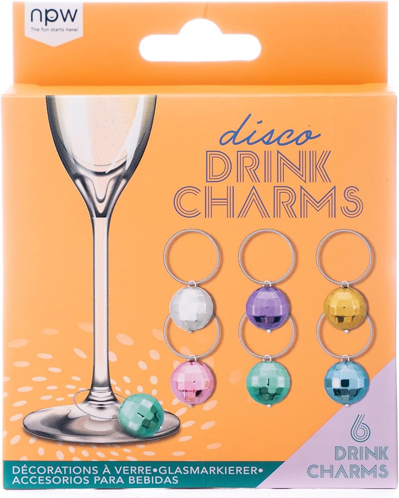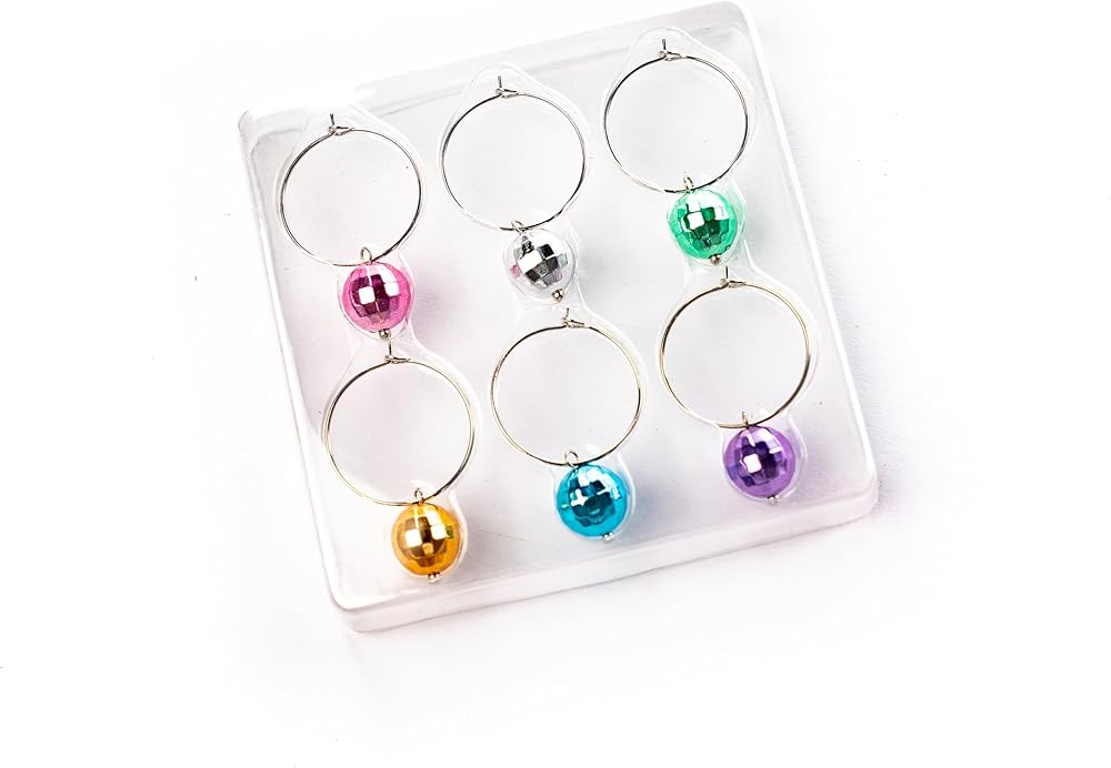 6 قطع من NPW سحر النبيذ على شكل كرة ديسكو للنظارات الجذعية مع حلقات معدنية، علامات كرة ديسكو لحفلات الديسكو في السبعينيات، سحر محدد لزجاج النبيذ وكوكتيل الشمبانيا، أدوات البار العصرية