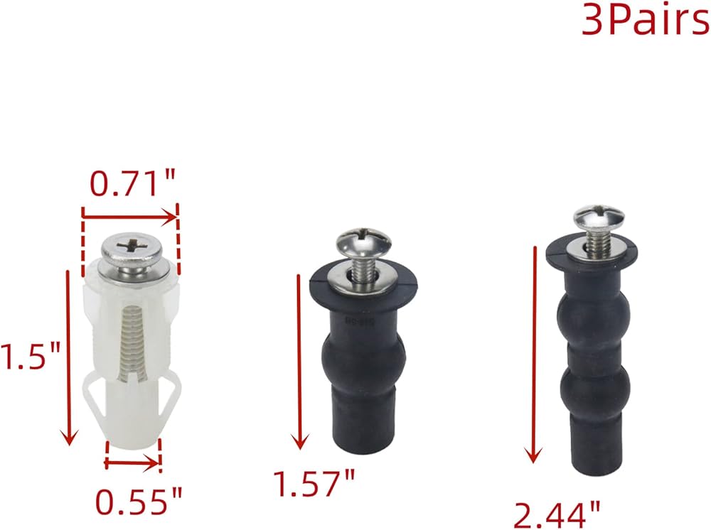 • Package Includes: 3 Pairs Toilet Seat Screws and Bolts Kit.