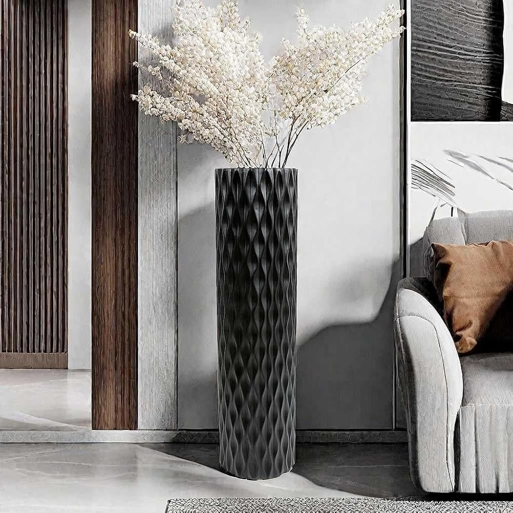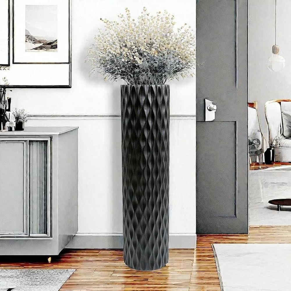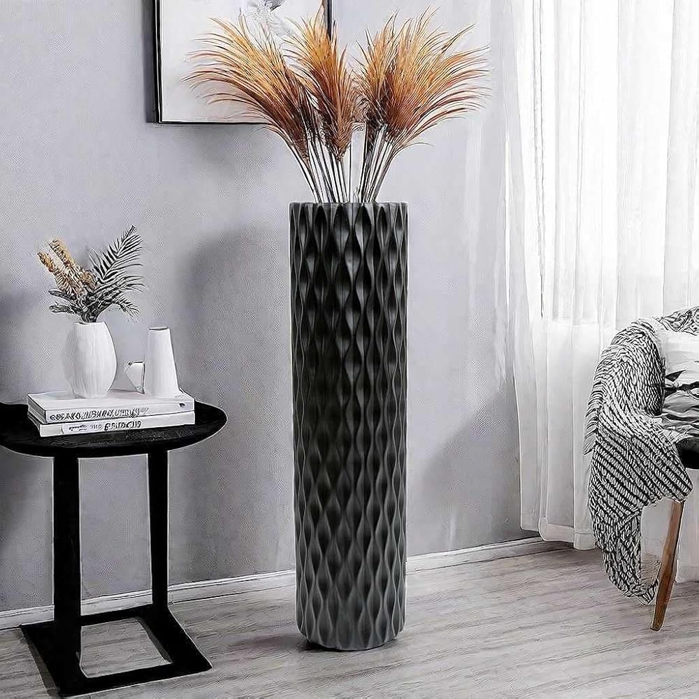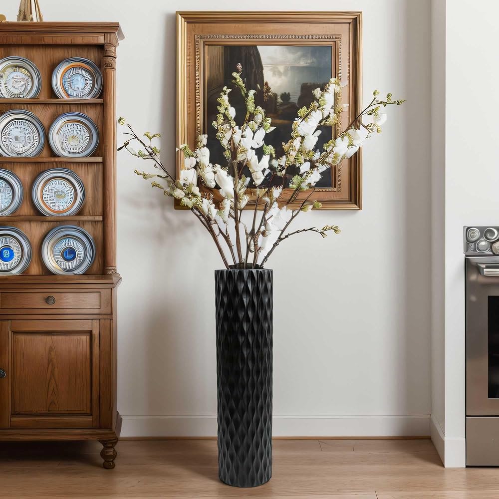 مزهرية أرضية كبيرة الحجم مقاس 30 بوصة مزهرية على شكل ماسي هندسي لفروع عشب بامباس المجففة لتزيين غرفة المعيشة ومزهرية ترتيب الزهور باللون الأسود