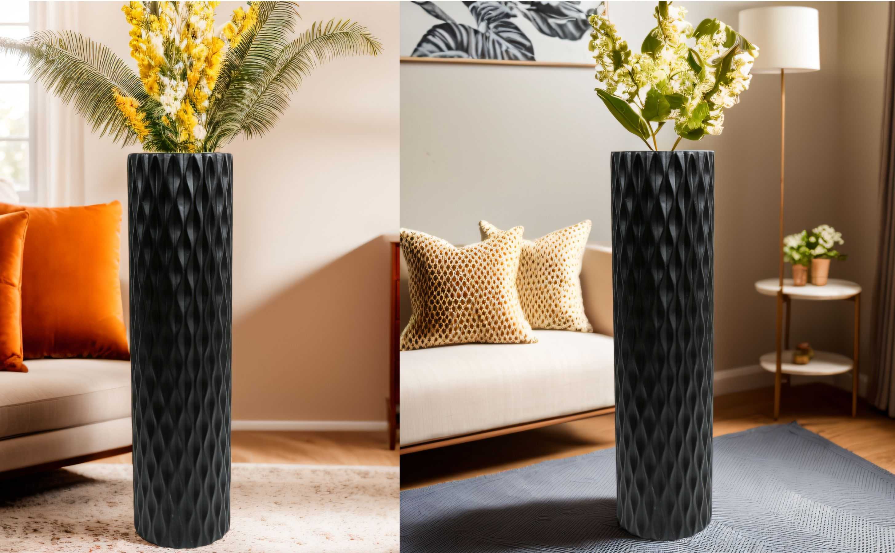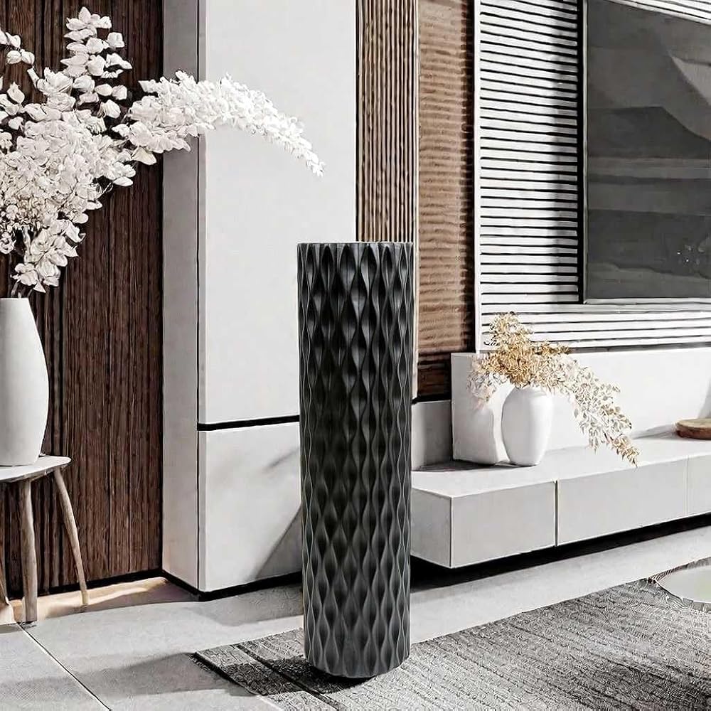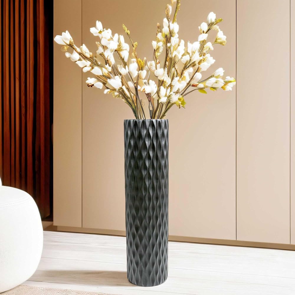 مزهرية أرضية كبيرة الحجم مقاس 30 بوصة مزهرية على شكل ماسي هندسي لفروع عشب بامباس المجففة لتزيين غرفة المعيشة ومزهرية ترتيب الزهور باللون الأسود