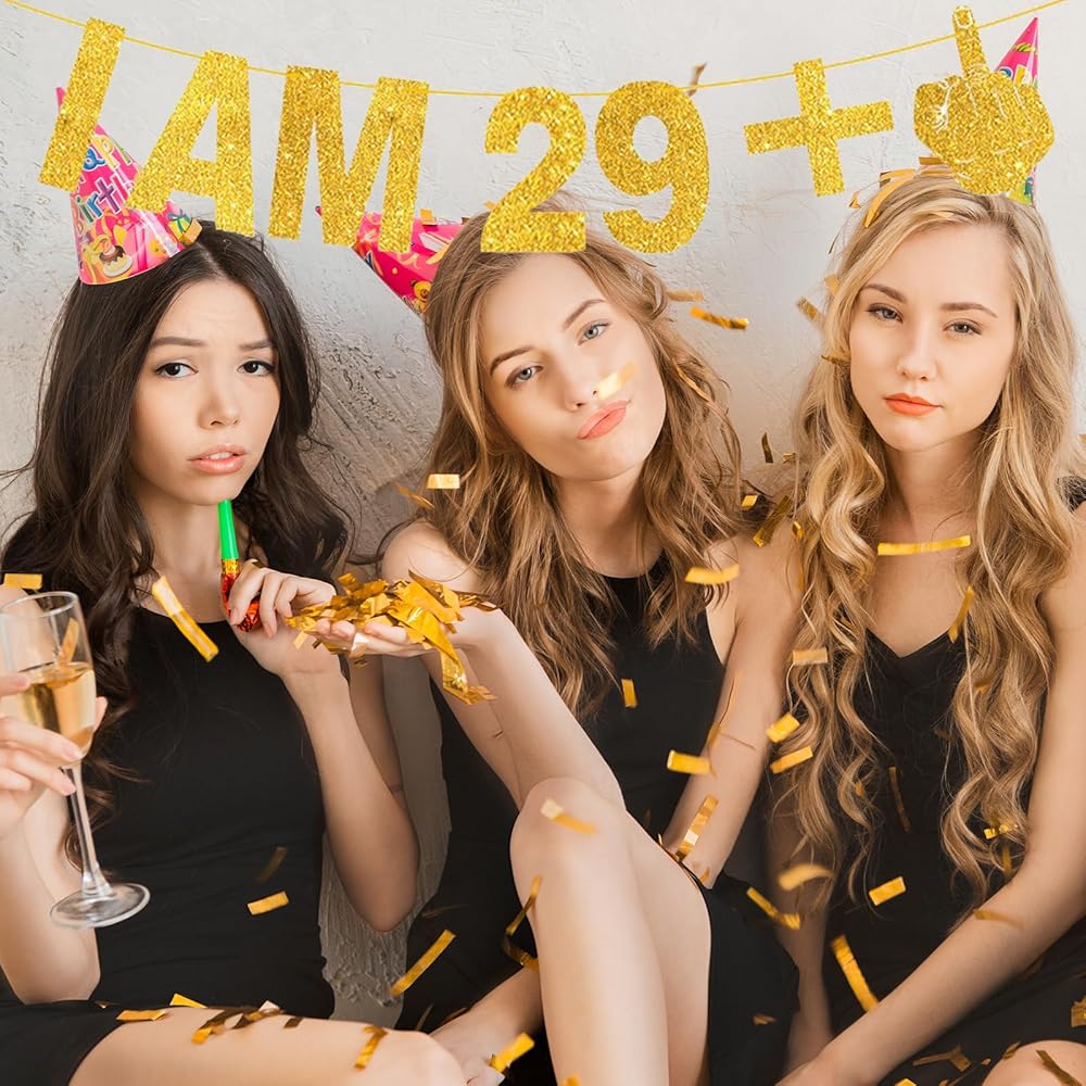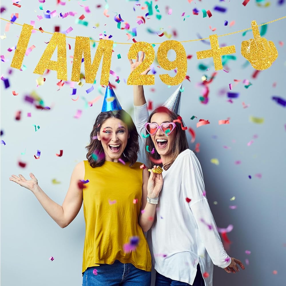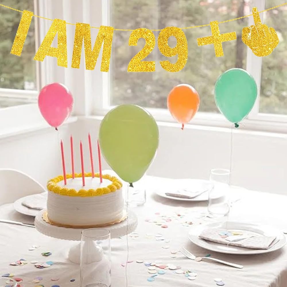 أنا 29 + 1 لافتة - لافتة عيد ميلاد الثلاثين، لافتة عيد ميلاد سعيد، لافتة زينة عيد ميلاد ذهبية لامعة للنساء والرجال، لافتة هدايا عيد الميلاد الثلاثين لتزيين حفلات أعياد الميلاد