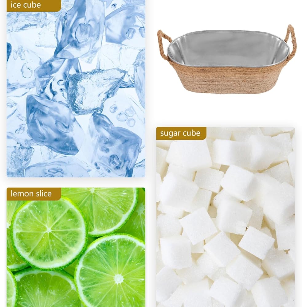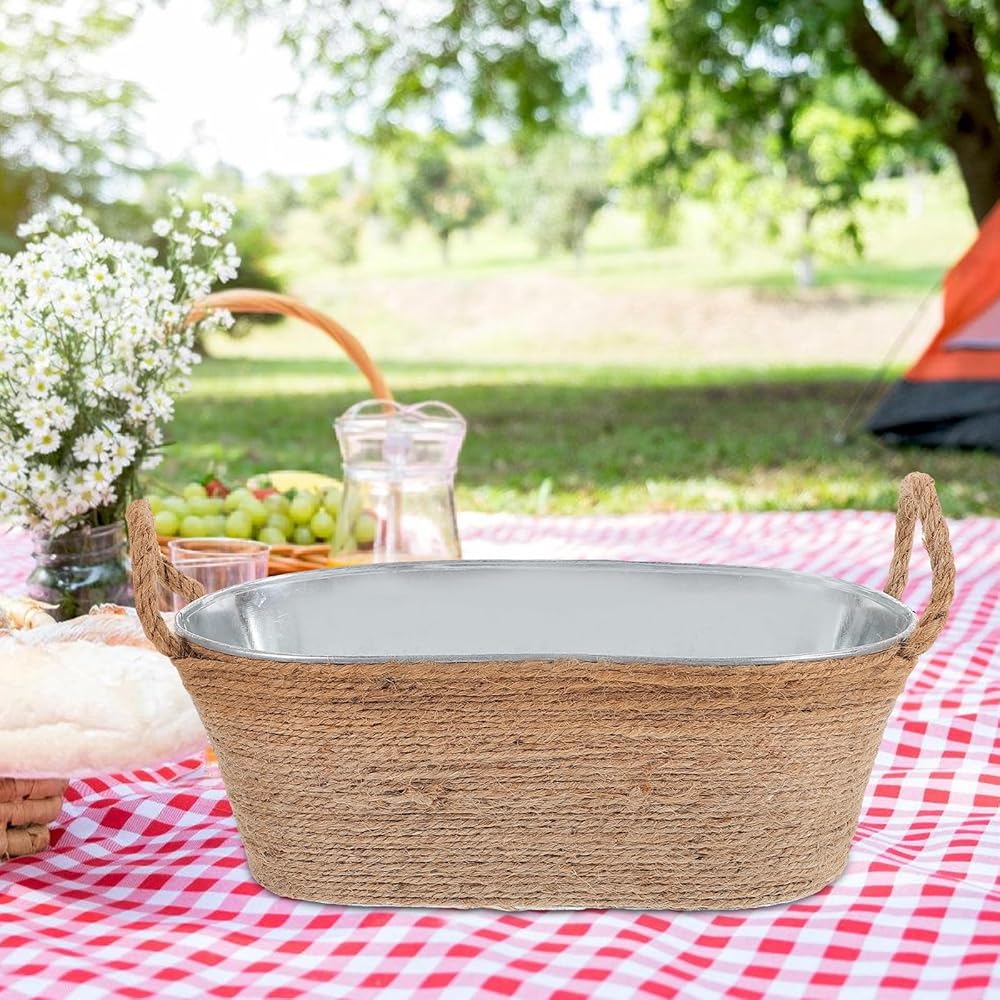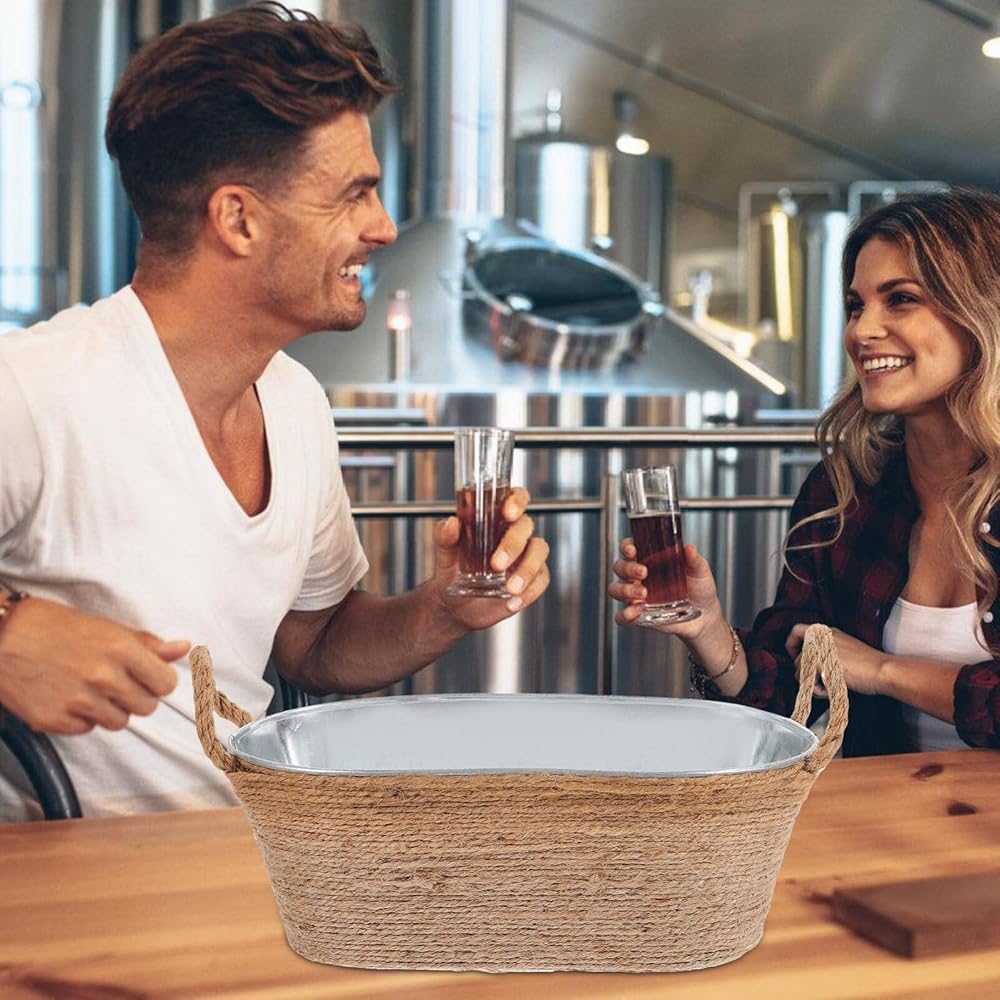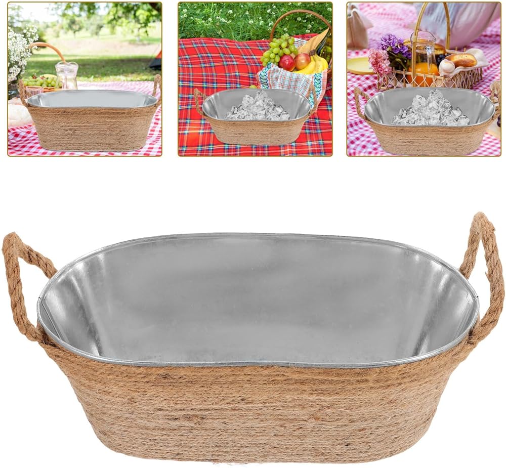 Galvanized Ice Bucket:Oval ice bucket ice tub drink bucket cooler with rope handles beverage tub drink buckets for parties galvanized tub.The ice storage bucket edges are smooth and round, without burrs, and will not hurt your hands or fingers when you use it