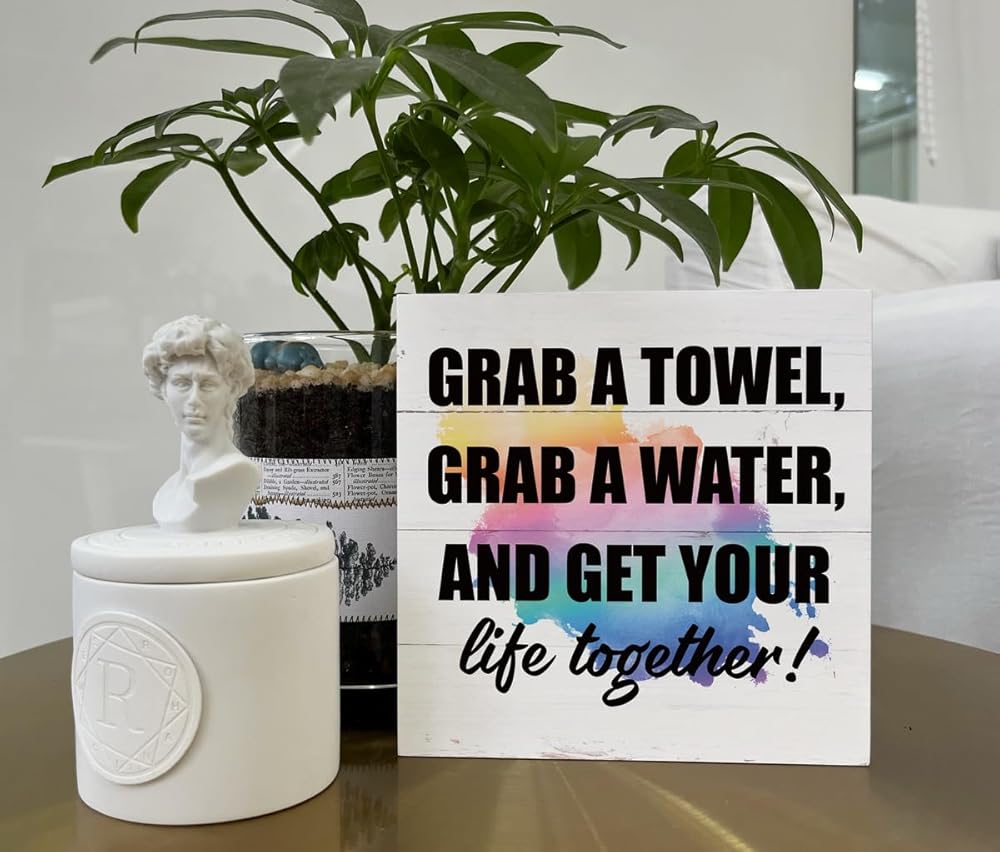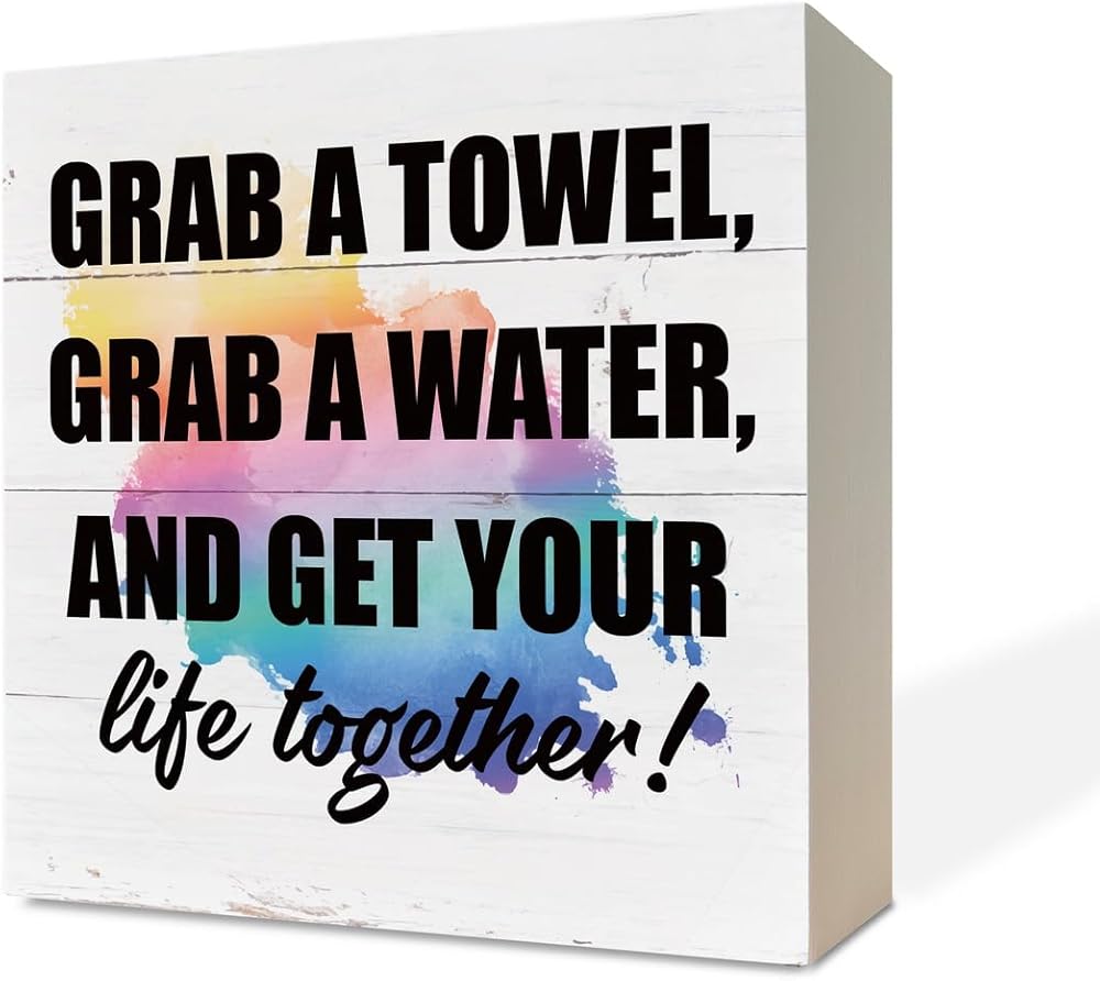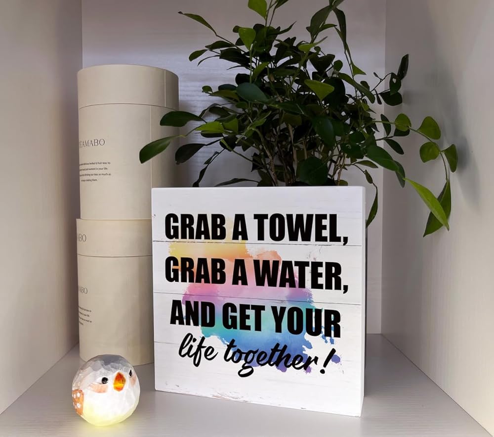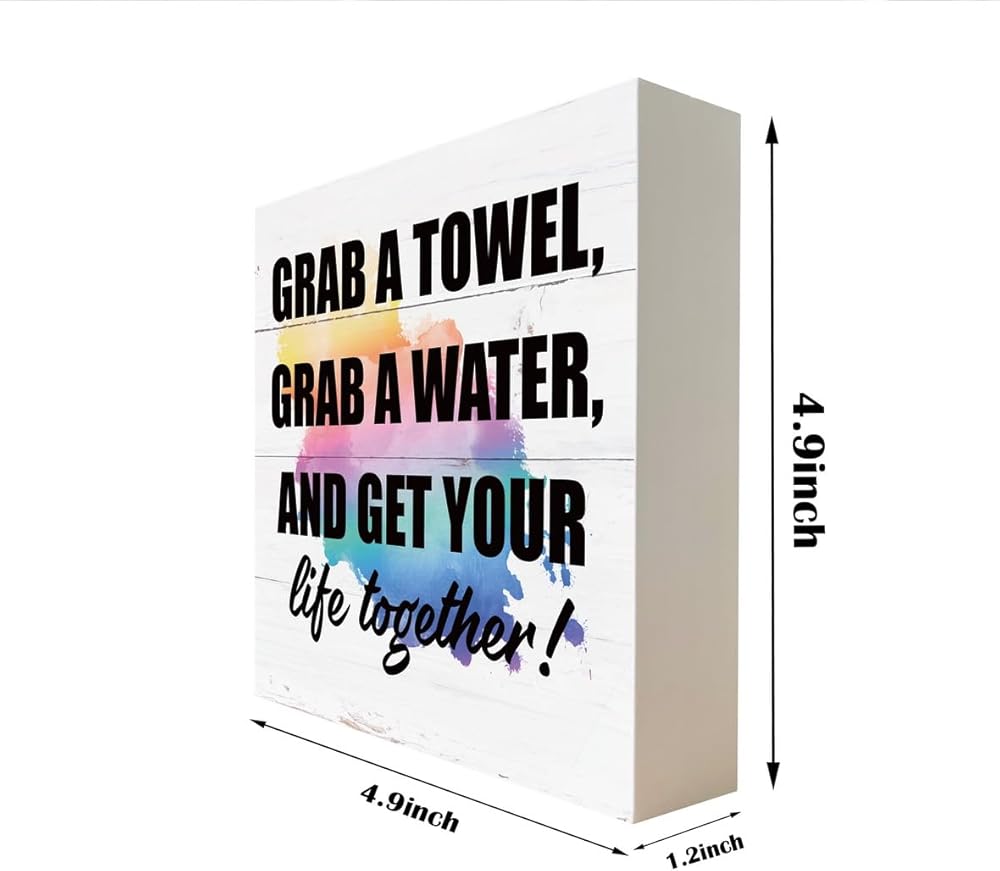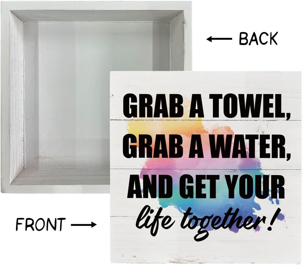 لافتات خشبية ملهمة، علامة للياقة البدنية، ديكور مكتب علامة صندوق خشبي، ديكور صالة الألعاب الرياضية التحفيزي، ديكور طاولة لصالة الألعاب الرياضية المنزلية، هدية لصديق التمرين، احصل على منشفة، احصل على الماء واحصل على حياتك معًا