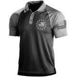 BlackTeak Men's Polo Shirt Short Sleeve Quick Dry American Flag Print Graphic Split Color Golf Shirt for Sport