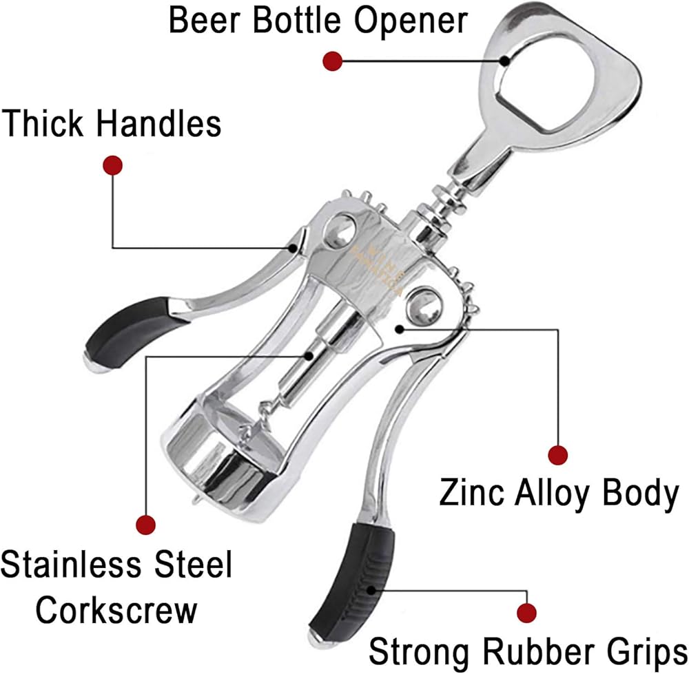 Stainless Steel Wing Corkscrew Wine Opener, Waiters Corkscrew Cork and Beer Cap Bottles Opener Remover For Waiters & Home Use, Used in Kitchen Restaurant and Bars