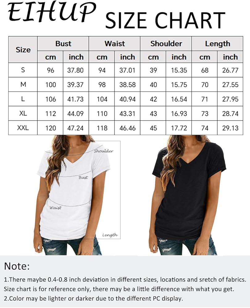 • Design: basic t-shirts, v neck, short sleeve, strechy fabric, solid color, loose fit, lightweight, comfy under shirts, casual style, suitable for spring, summer and fall.