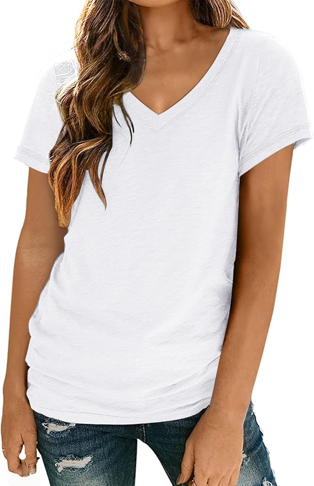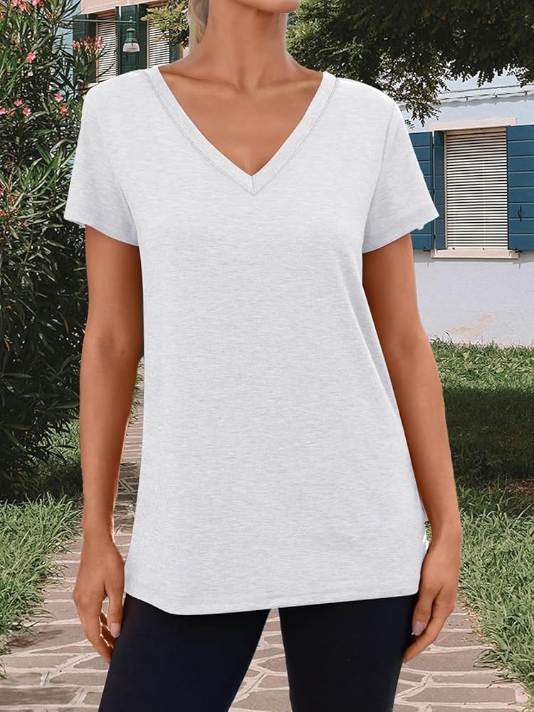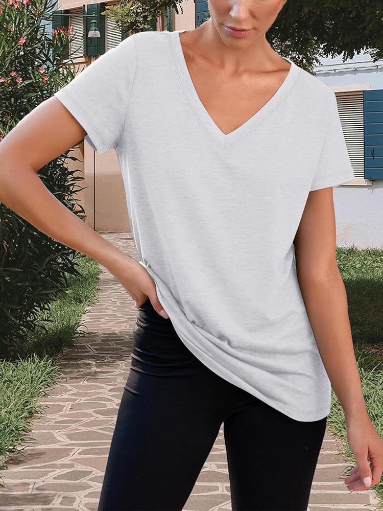 Womens T Shirts Short Sleeve V Neck Tops Summer Fashion Trendy Soft Casual Comfy Outfits Clothes