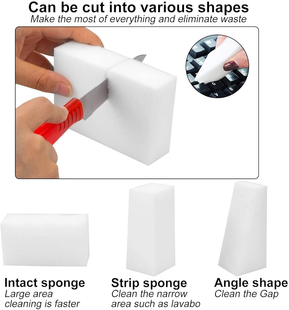 SIZES - Extra Thick and Length 100x70x30 mm/4x2.7x1.2 inch (LxWxH), Magic Cleaning Eraser sponges Can be cut into any sizes for a suitable shape