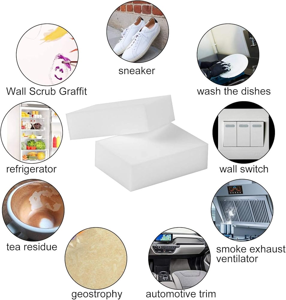 WIDELY USED - Eraser pads good for kitchen, bathroom, home. It's a wall cleaner, bathtub cleaner, oven door cleaner, light switch cleaner, doors cleaner, Furniture cleaner, shoes cleaner, car interiors cleaner and more cleaner