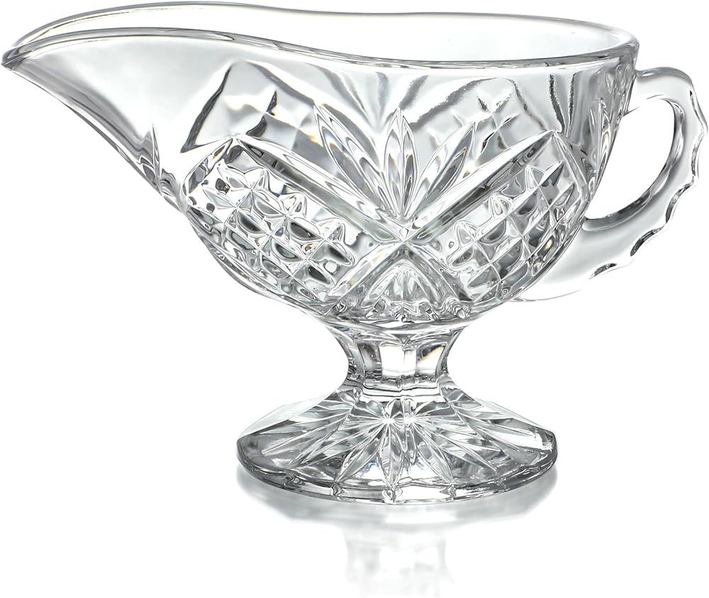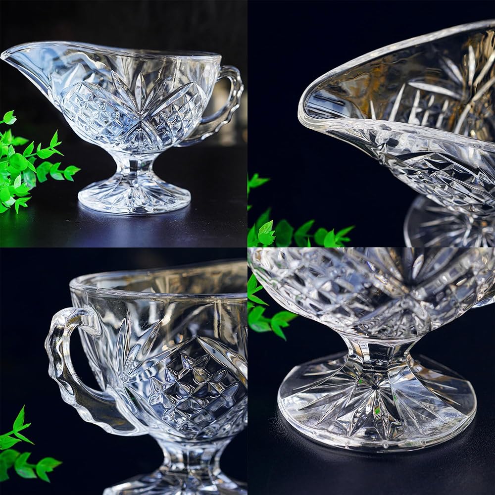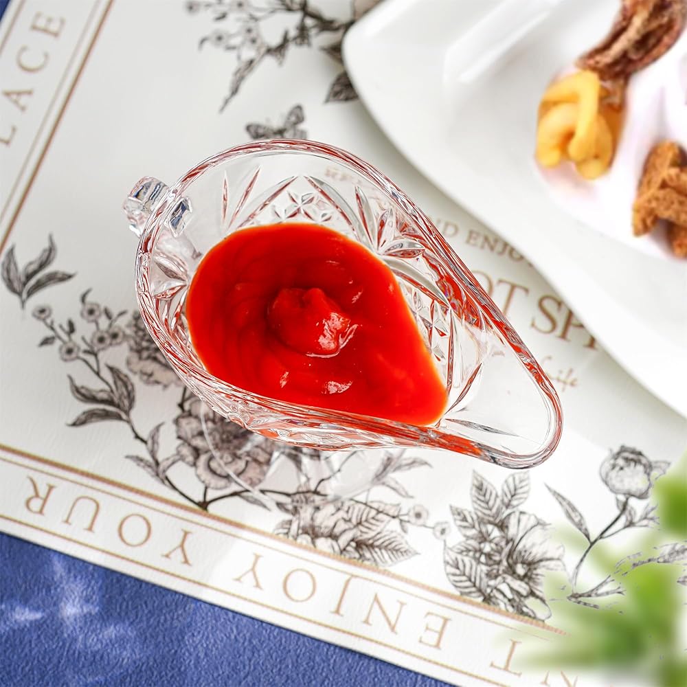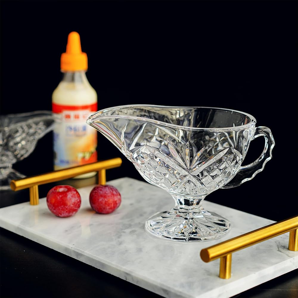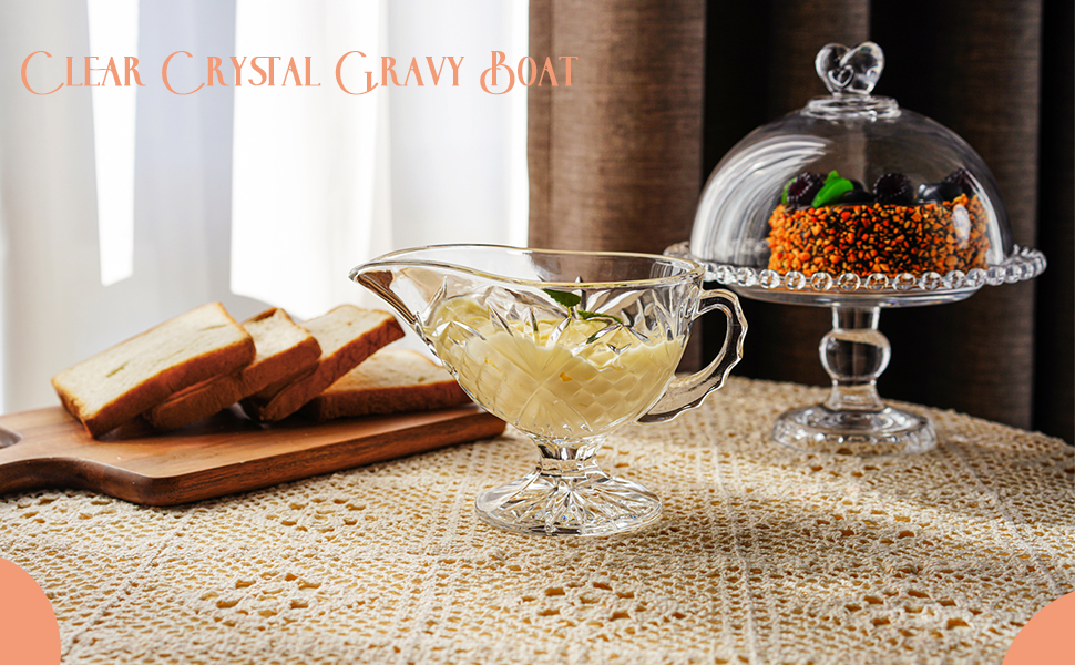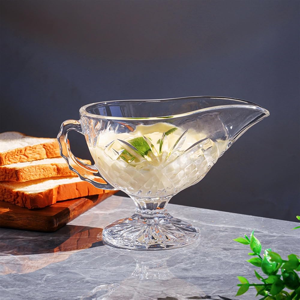 - يمكن استخدام قارب المرق الكريستالي هذا في طبق صلصة زيت الحليب وصلصة السلطة