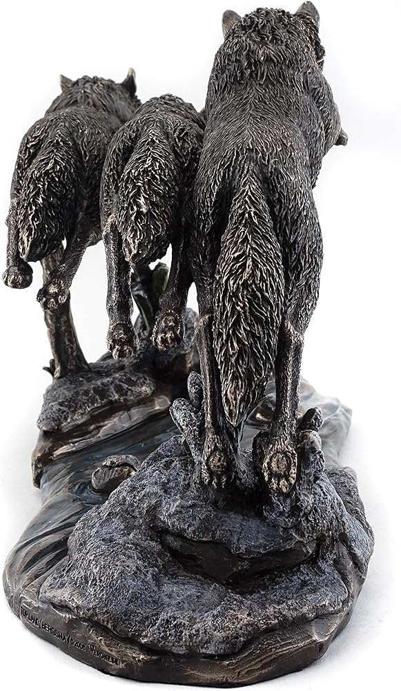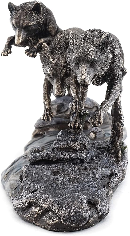 ✔️ GORGEOUS PRESENTATION - Designed by Jody Bergsma. Three wild and free wolves jumping over a creek together. This wolf pack statue is a stunning display of nature.