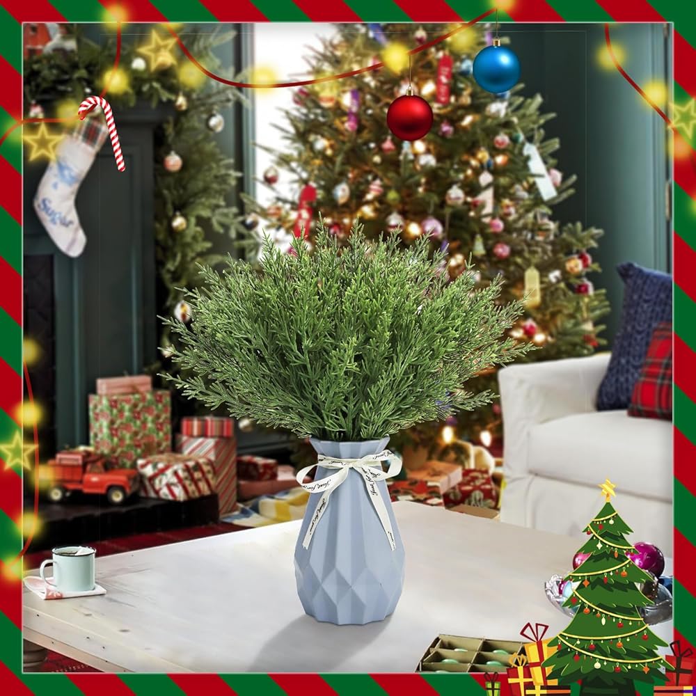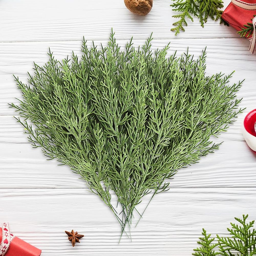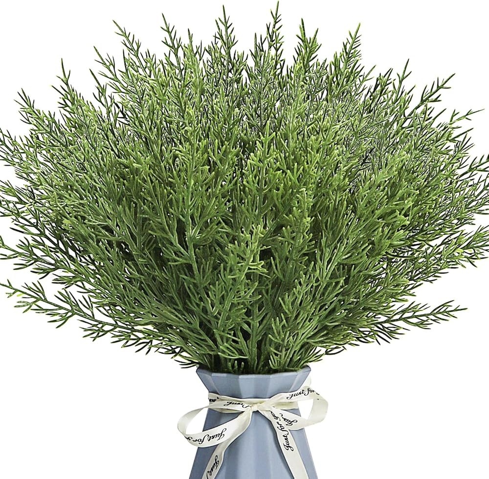Realistic Appearance: Each faux cedar stem features lifelike green sprigs and pine needles that mimic the look and texture of real evergreen foliage.