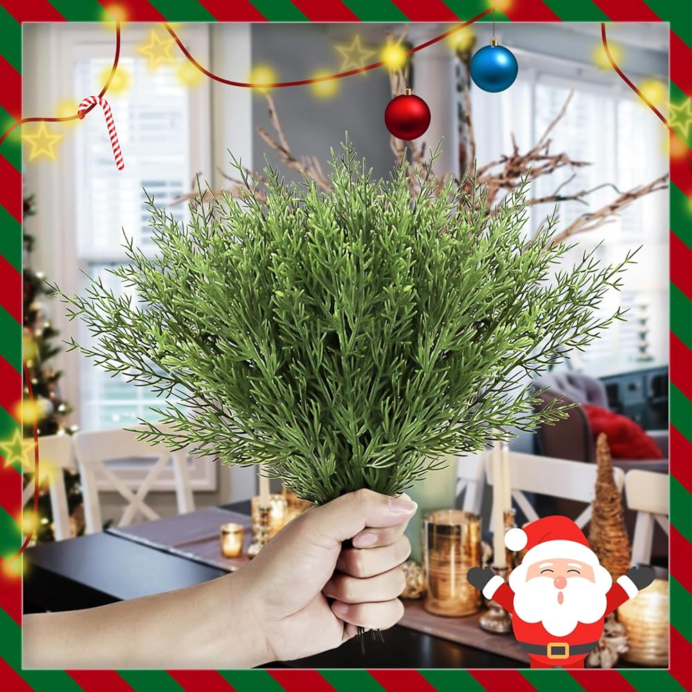 Easy to Use: These christmas greenery pine picks can be easily arranged, bent, and shaped to create wreaths, garlands, centerpieces, or other festive arrangements.