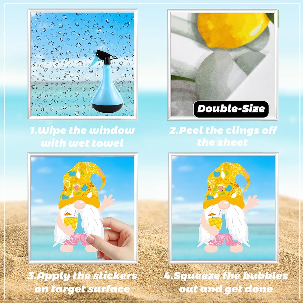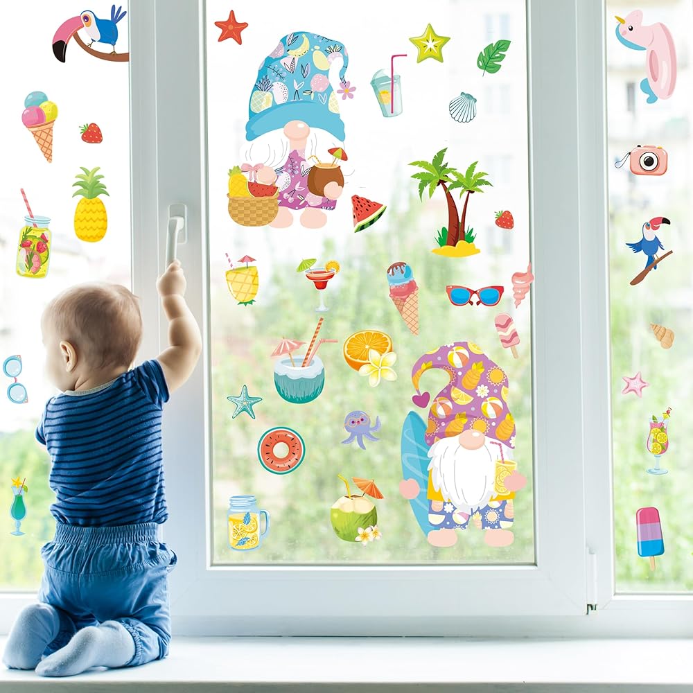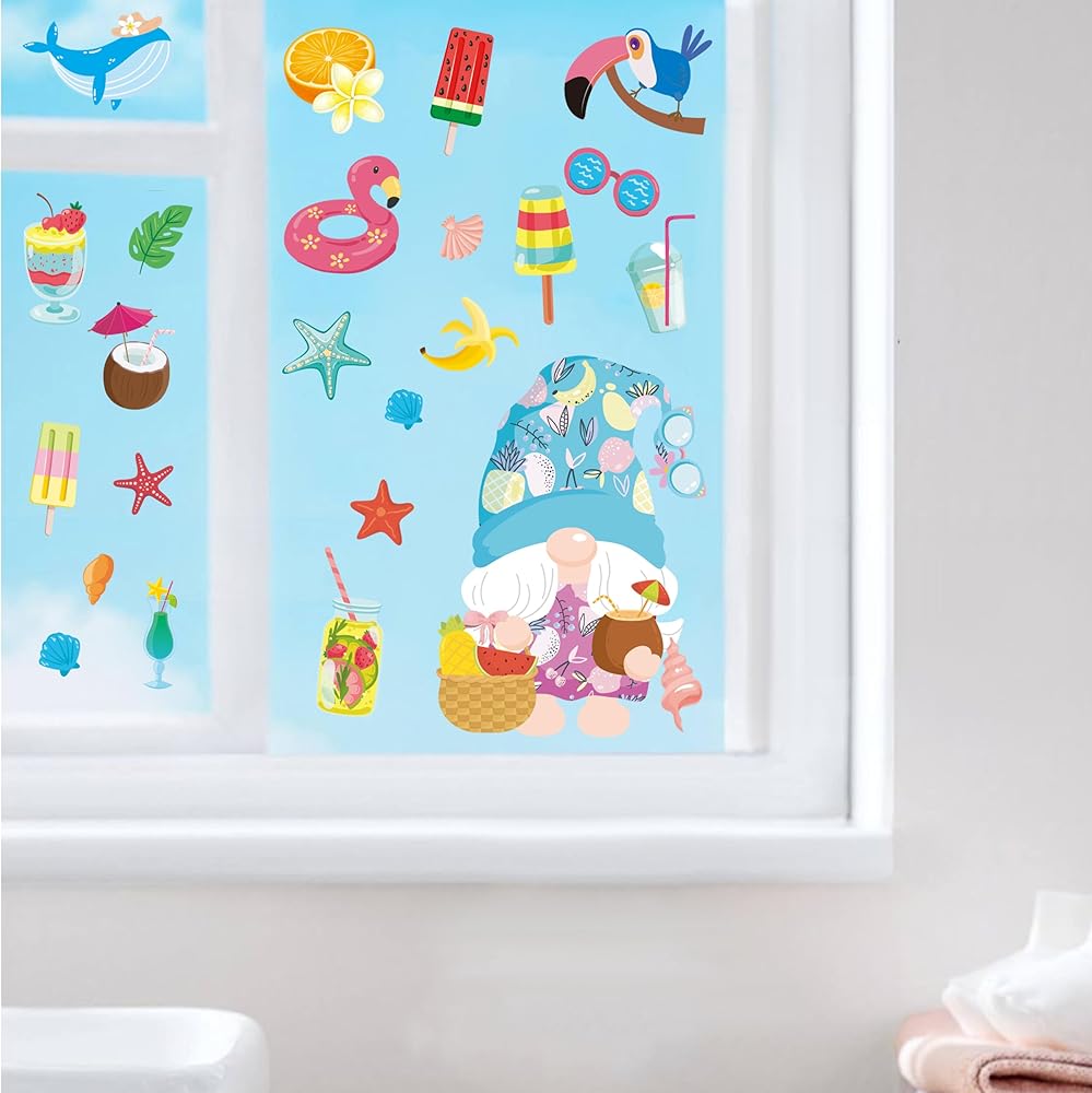 【Wide Application】 This Window Clings for Kids Contains a Variety of Different Patterns, Including ice cream,gnomes ,popsicles,lemons, flowers, honey, cake, leaves, drinks, and many other summer elements to liven up your windows.