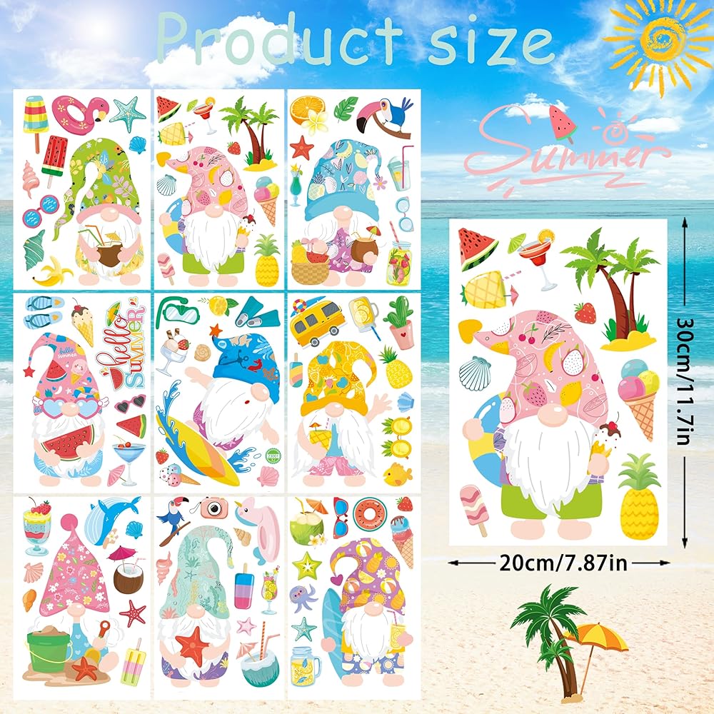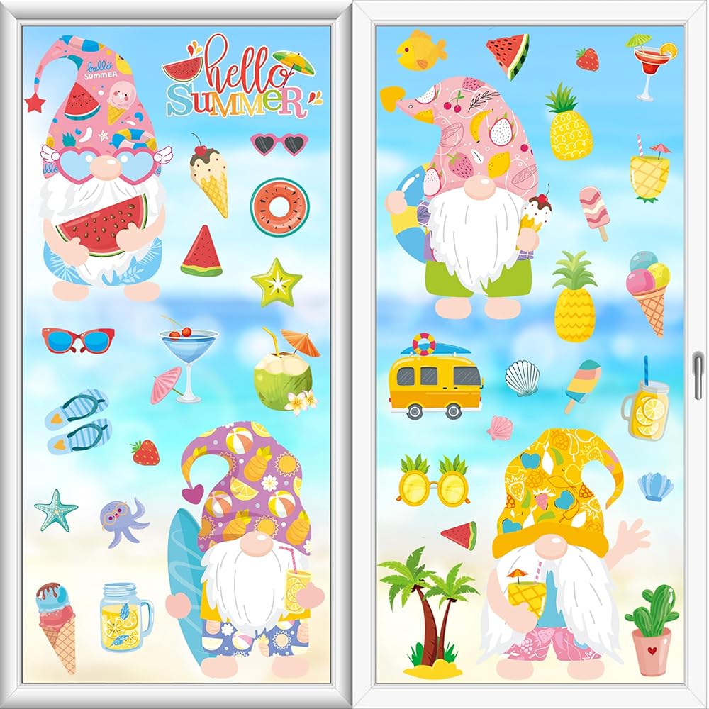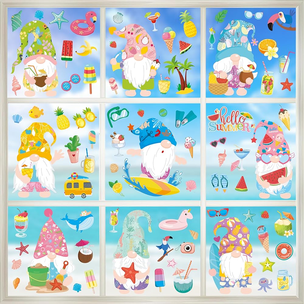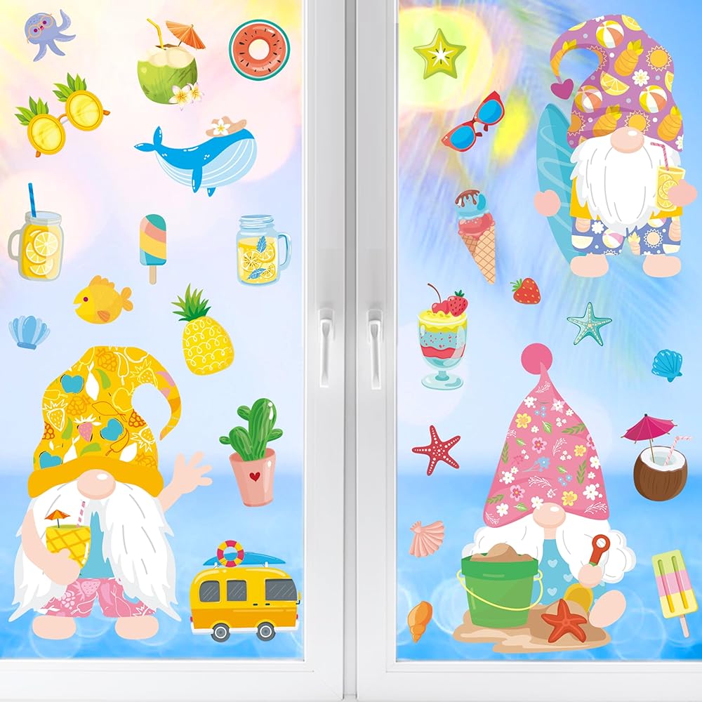 【Wide Application】 This Window Clings for Kids Contains a Variety of Different Patterns, Including ice cream,gnomes ,popsicles,lemons, flowers, honey, cake, leaves, drinks, and many other summer elements to liven up your windows.