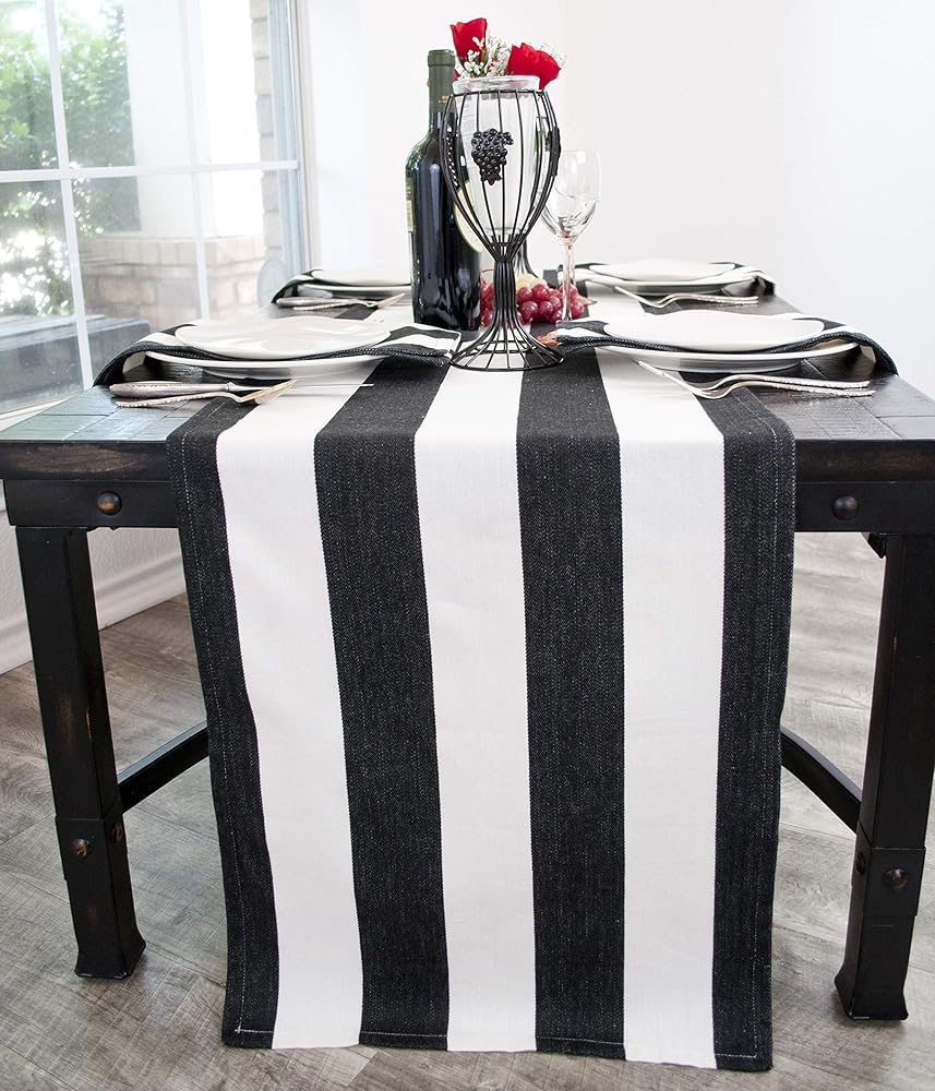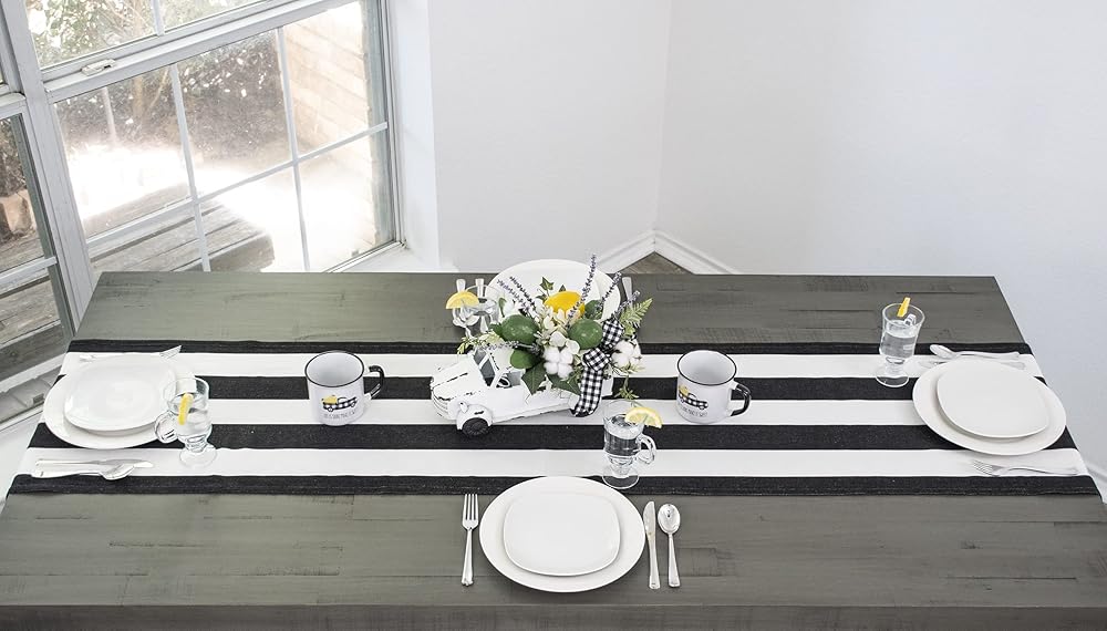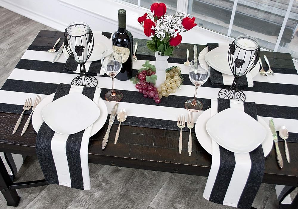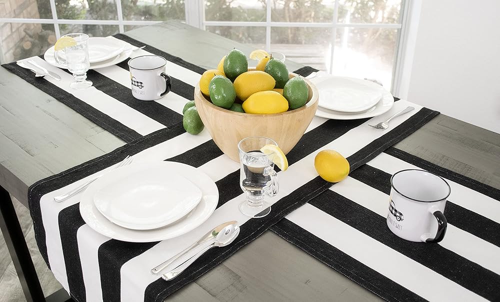 يتميز هذا المفرش القطني البسيط ومفرش الأطباق بنمط مخطط تقليدي يمكن أن يضيف لمسة ريفية أو أنيقة إلى طاولتك وسيبرز الألوان في الغرفة.