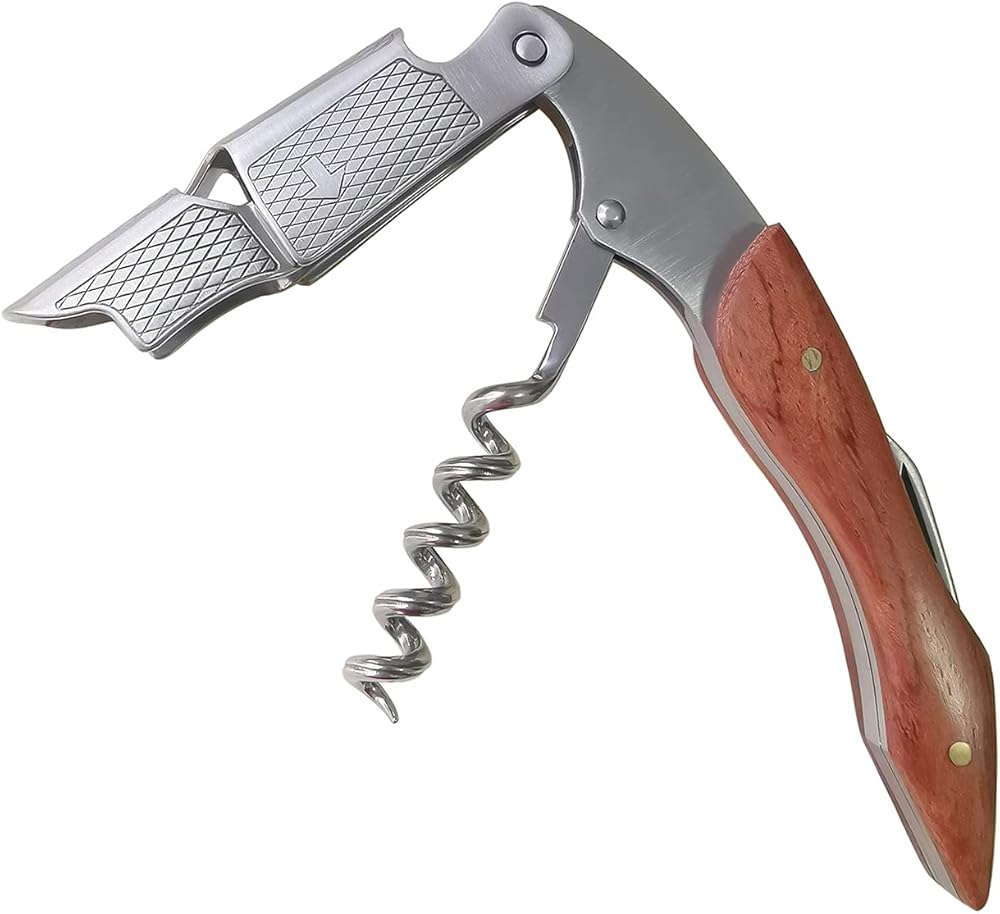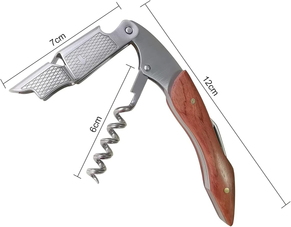 4. All In 1 multi-functional corkscrew, it could use as a beer bottle opener, build in a sharp and serrated foil cutter in the stainless steel body, it is also a foldable wine corkscrew with double hinges and two step pull feature. Perfect for servers, waiter, bartender, sommeliers and wine lover daily needs in home.