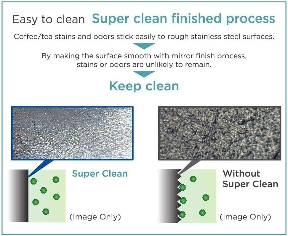 Stay hydrated with Tiger's Vacuum Insulated Mug. Our manufacturing process produces a lightweight bottle that makes it easy to carry while keeping cold and hot temperatures for over 6 hours. The double-wall construction also helps eliminate condensation and reduce heat transfer to the outside of the bottle. Other feature includes a "Super Clean" interior surface finish, twist-off lid with gasket, and easy drink wide mouth stainless steel bottle. Made in Japan.