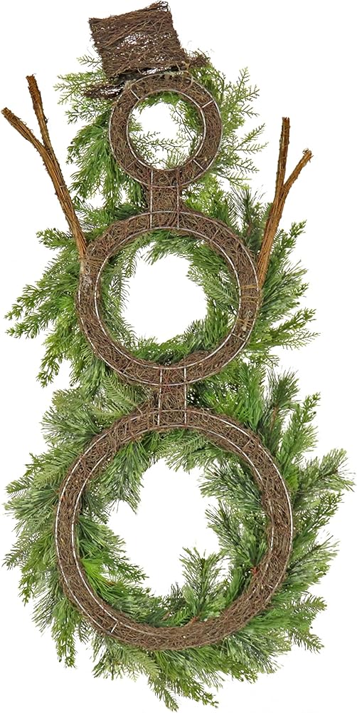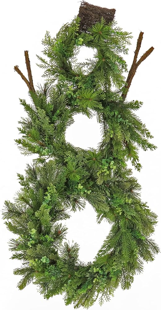 This fantastically festive artificial wreath features three wreaths put together to form a snowman