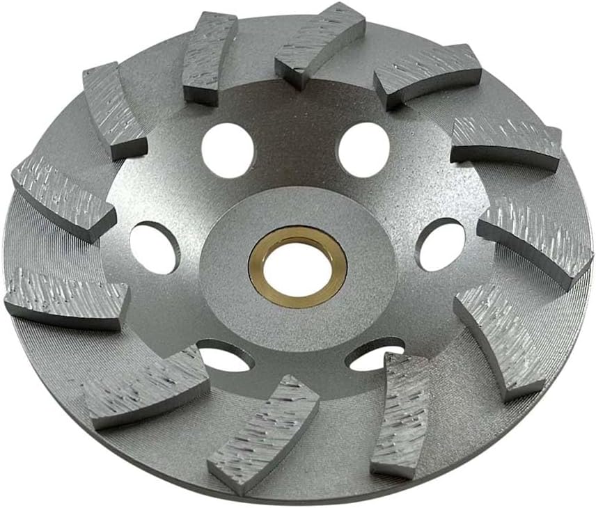 Our diamond grinding wheels are purposely designed for fast, efficient grinding that leaves a smooth finish. Ideal for grinding, cleaning, leveling and coating removal. Specifications: ECONOMICAL - cost effective, budget friendly version of our standard grinding wheels MULTIPURPOSE - designed for grinding, cleaning, leveling or coating removal for concrete and masonry GRIT SIZE - #30/40 grit size BOND TYPE - medium bond SEGMENT STYLE - 12 turbo segments ARBOR SIZE - 7/8"-5/8" non-threaded arbor OPTIMAL RPM - 7200 RPM (recommended), 12000 RPM (maximum) WET OR DRY - recommended to use wet or dry with angle grinders