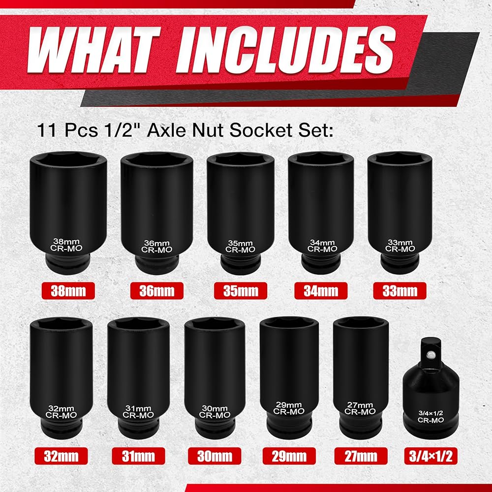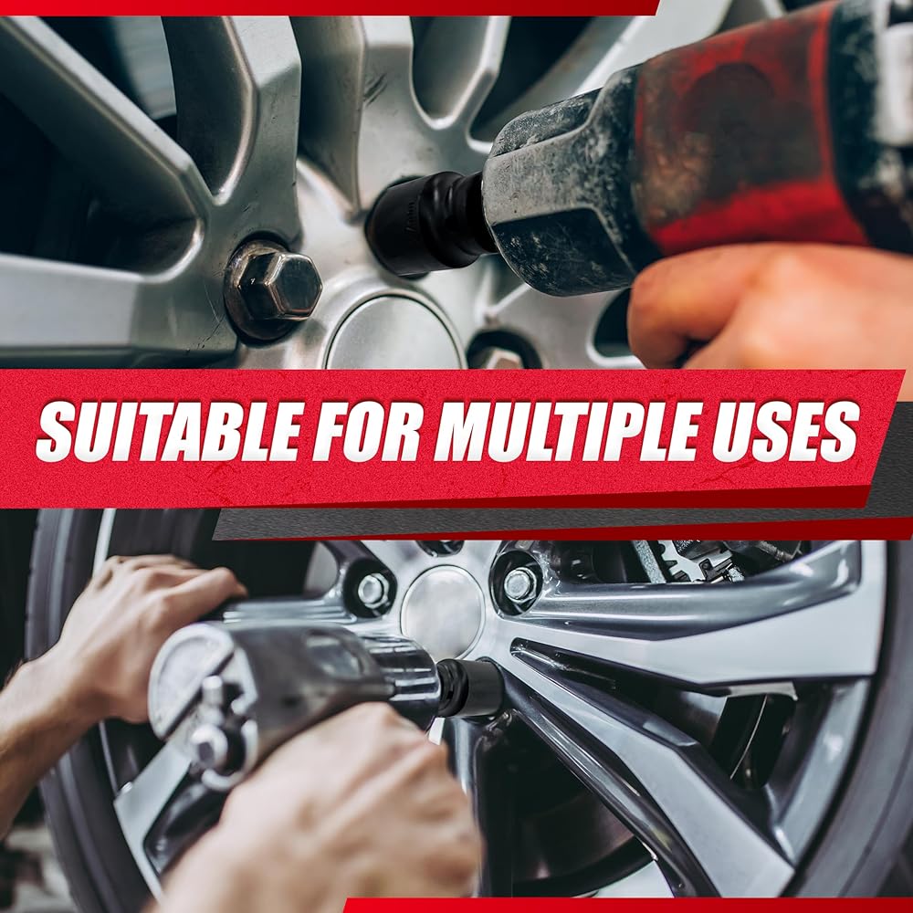 【جانب مزدوج】تم تصميم مقابس الصواميل الرفيعة ذات النهاية المزدوجة لتغيير الإطارات وإصلاح الفرامل وإجراء أعمال إصلاح السيارات الأخرى بسهولة. يناسب 8 من أحجام صواميل العروة الأكثر شيوعًا لكل من الإزالة والتركيب، مما يوفر تنوعًا لمهام السيارات المختلفة.