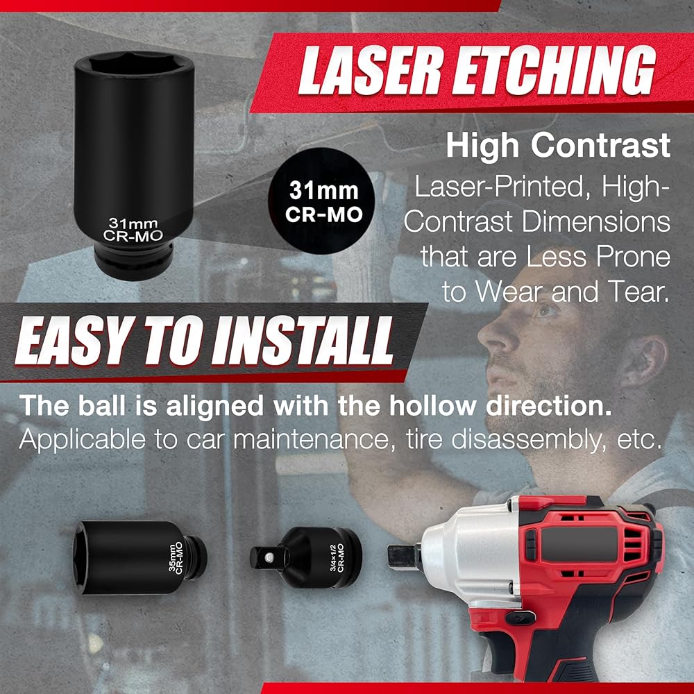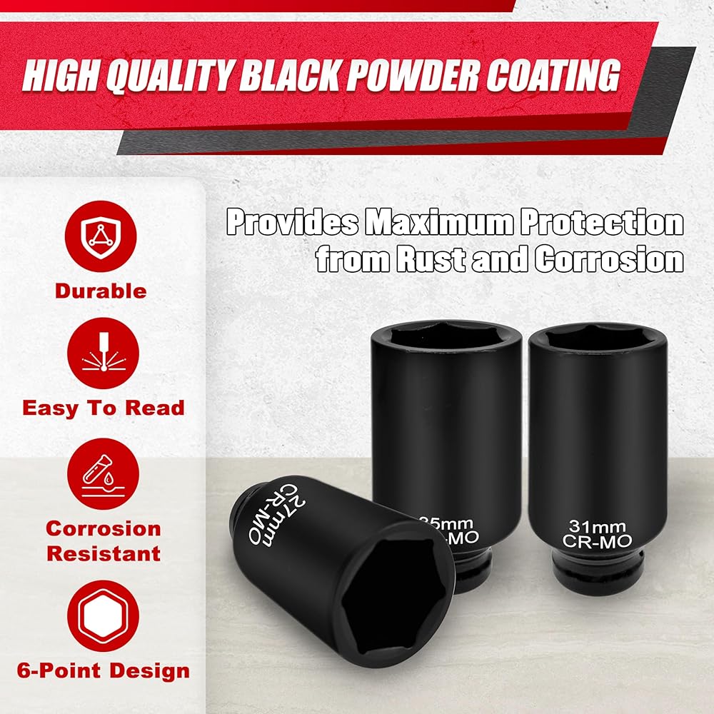 【المميزات】 الأبعاد الموجودة على المقبس هي جميعها أبعاد عالية التباين للطباعة بالليزر، والتي ليس من السهل أن تبلى ويمكن رؤيتها بوضوح في الإضاءة المنخفضة. إنها مريحة لك للعمل ليلاً. تم تحديد أبعاد المقابس بدقة يمكن استخدامها في جميع أنواع معدات السيارات أو الميكانيكية. يمكن للتصميم المكون من 6 نقاط أن يمنع الصمولة بشكل فعال من التآكل والانزلاق.