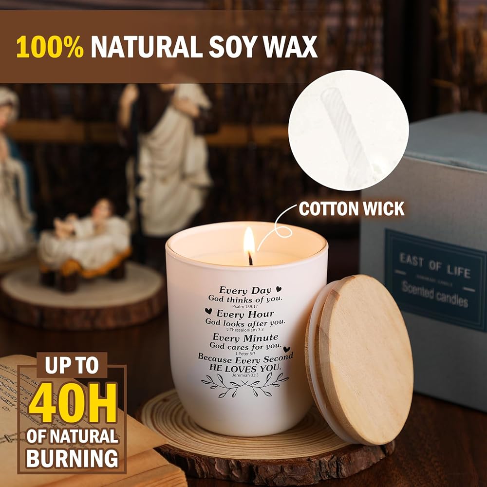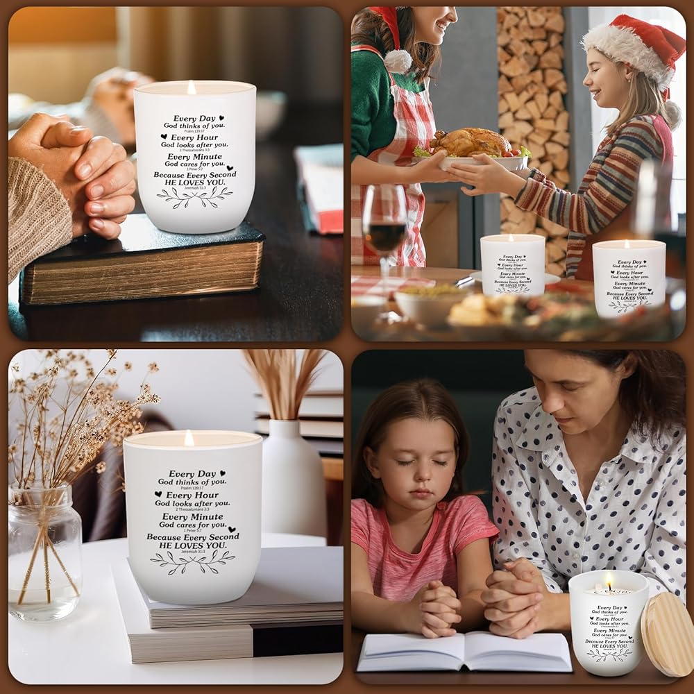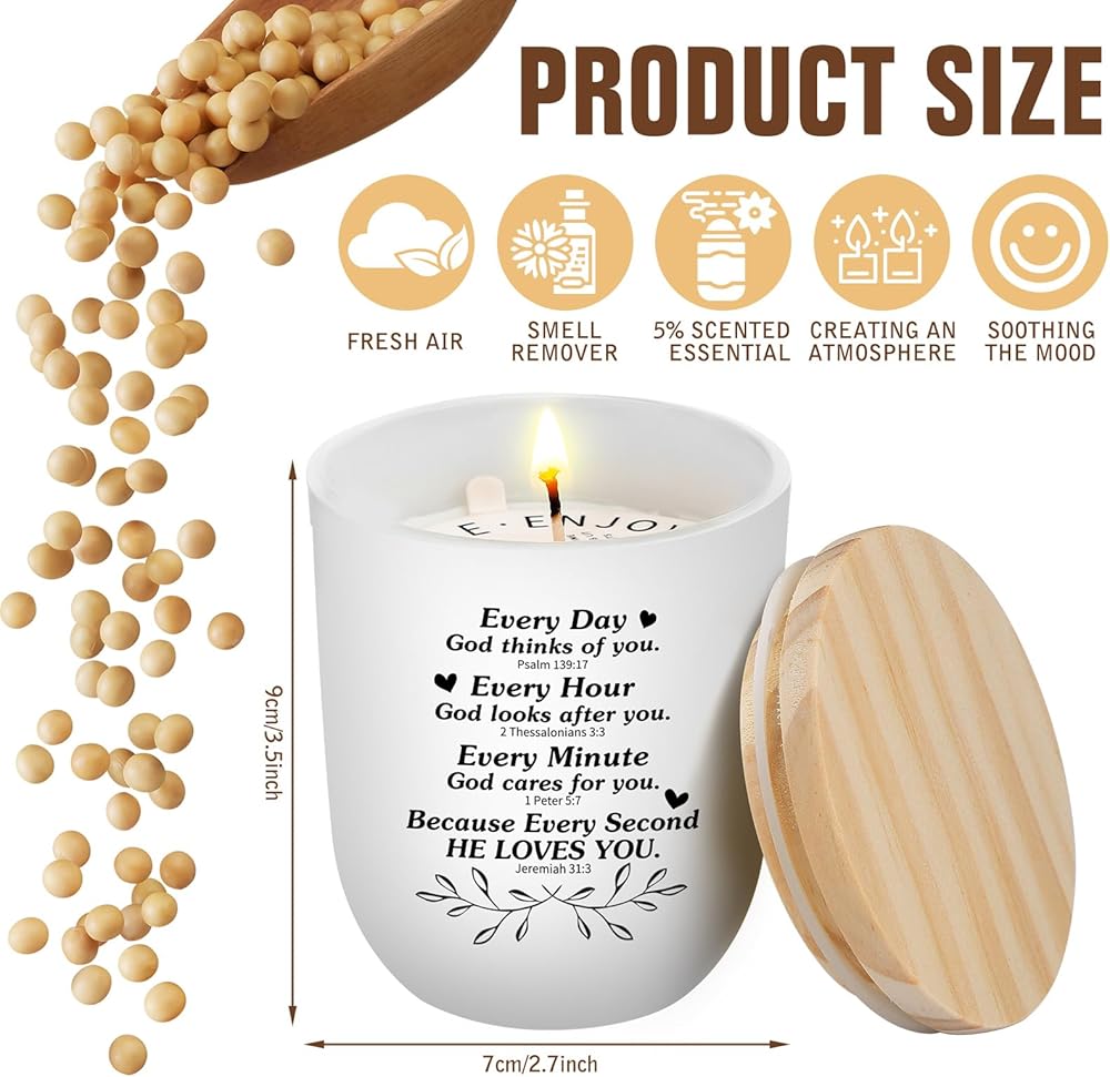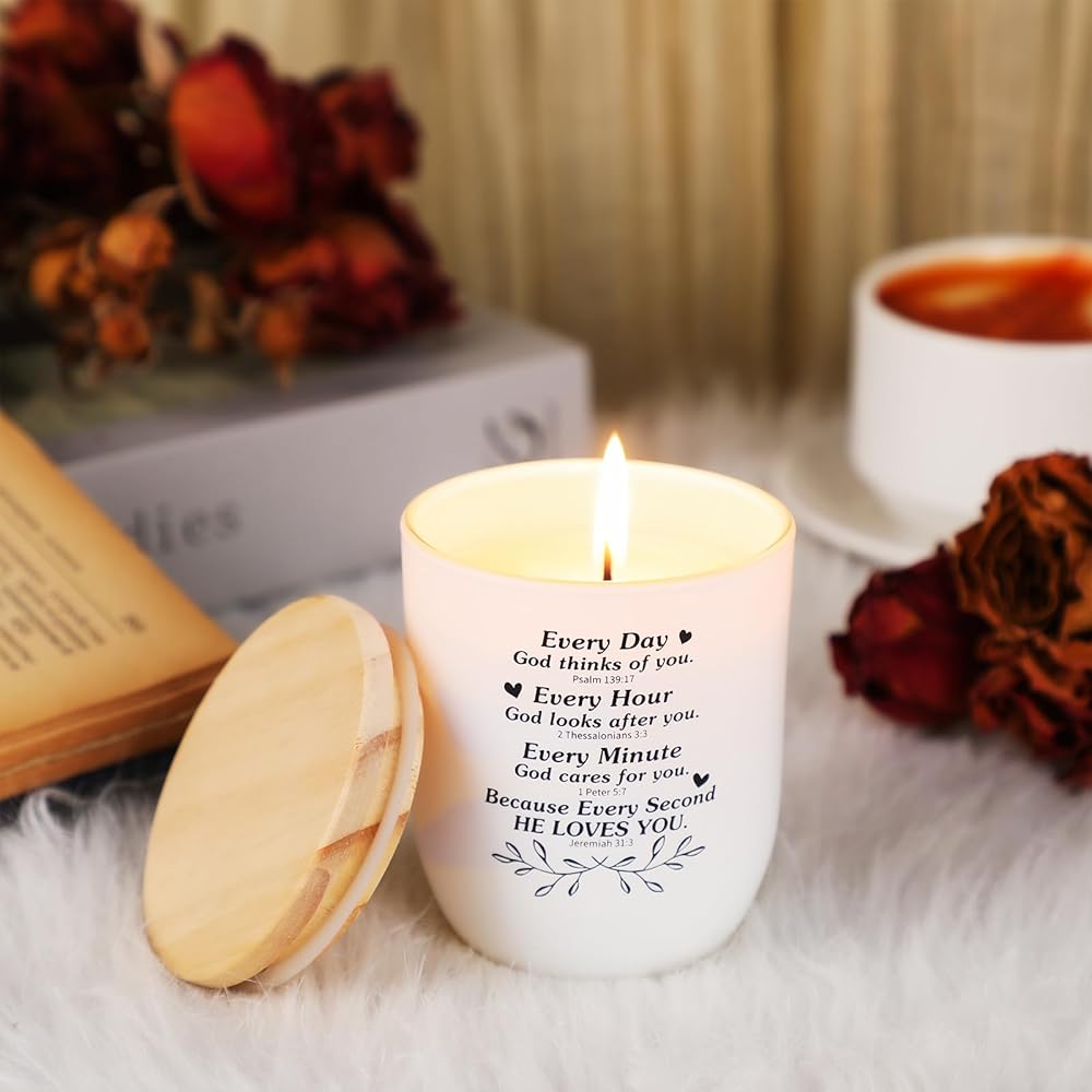 • ملهمة ومعطرة: تم تصميم الشمعة النسائية بآية كتابية تحفيزية، والتي يمكن أن تلهمك أنت والآخرين، ومع رائحة الزهور، ستجعل رائحة الغرفة منعشة ومريحة لساعات، إضافة عملية وأنيقة لأي منزل.