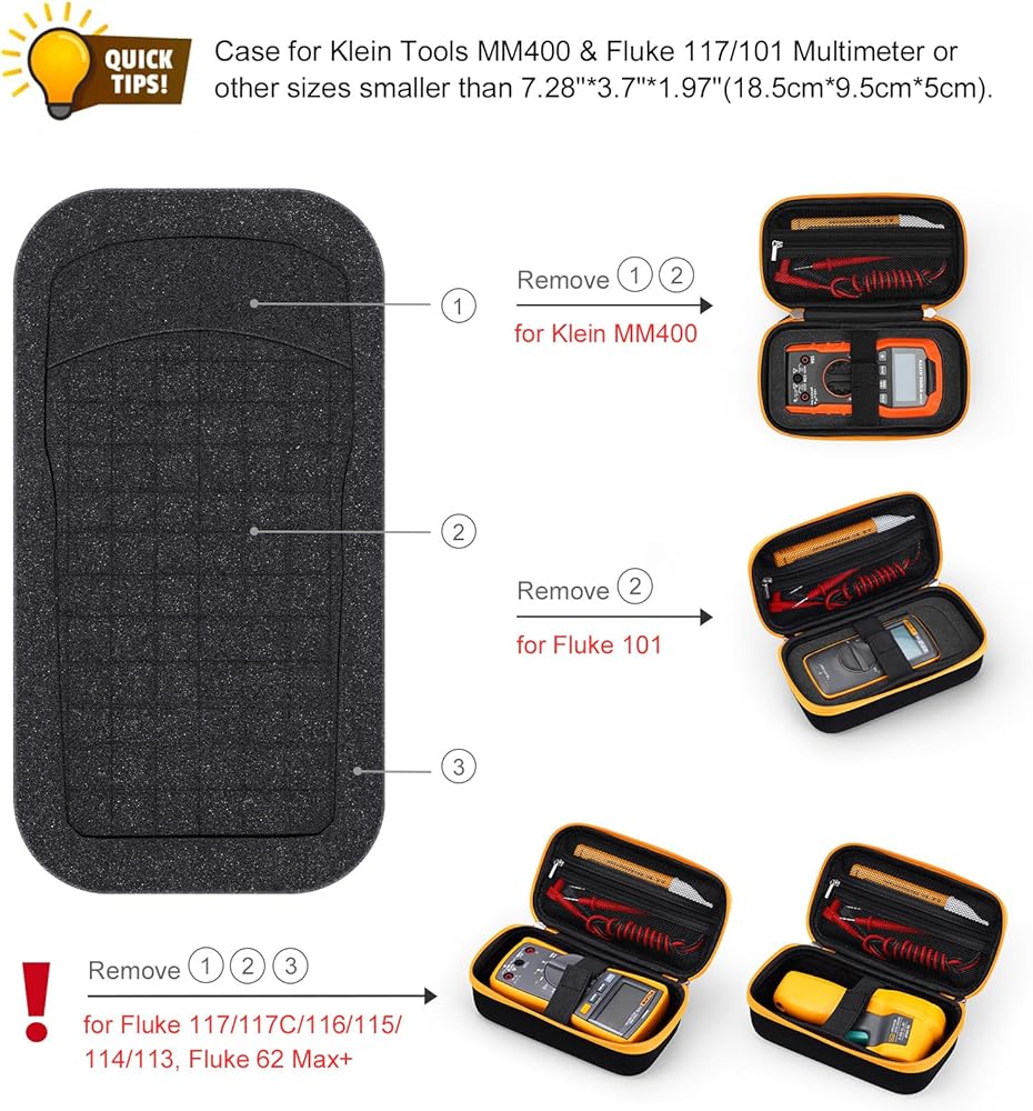 حافظة صلبة متوافقة مع Fluke 117/116/101 Multimeter، حقيبة حمل لأدوات Klein Tools MM400/MM325، جهاز قياس الحماية، أسود