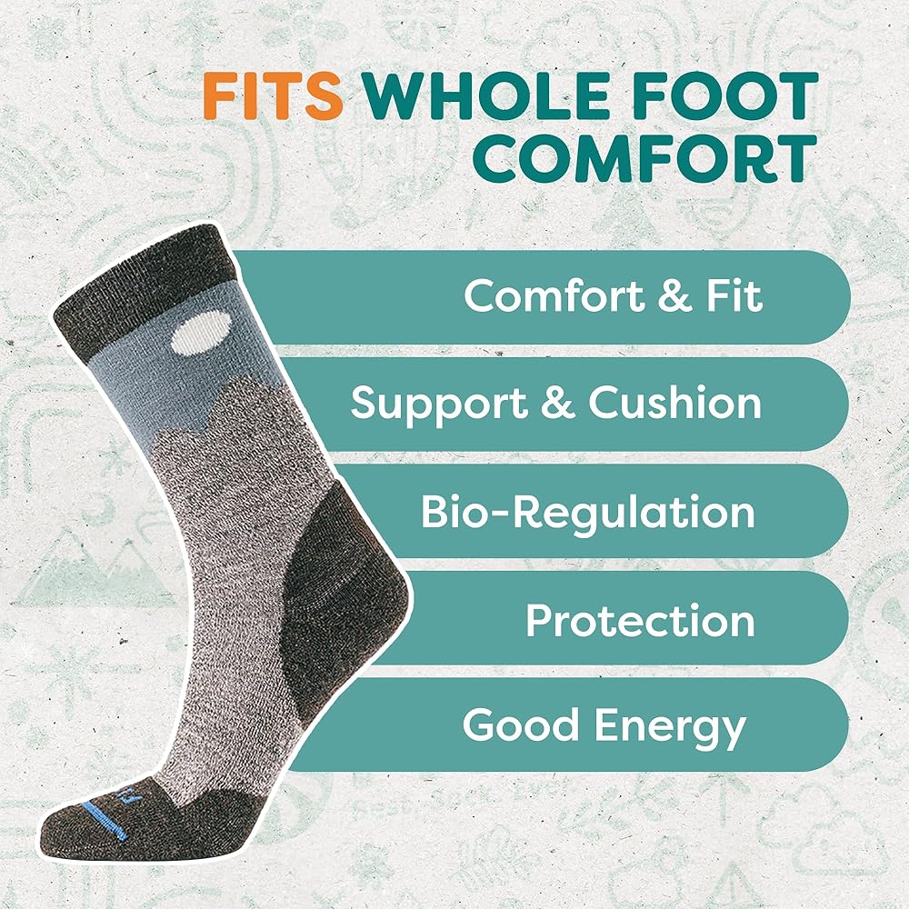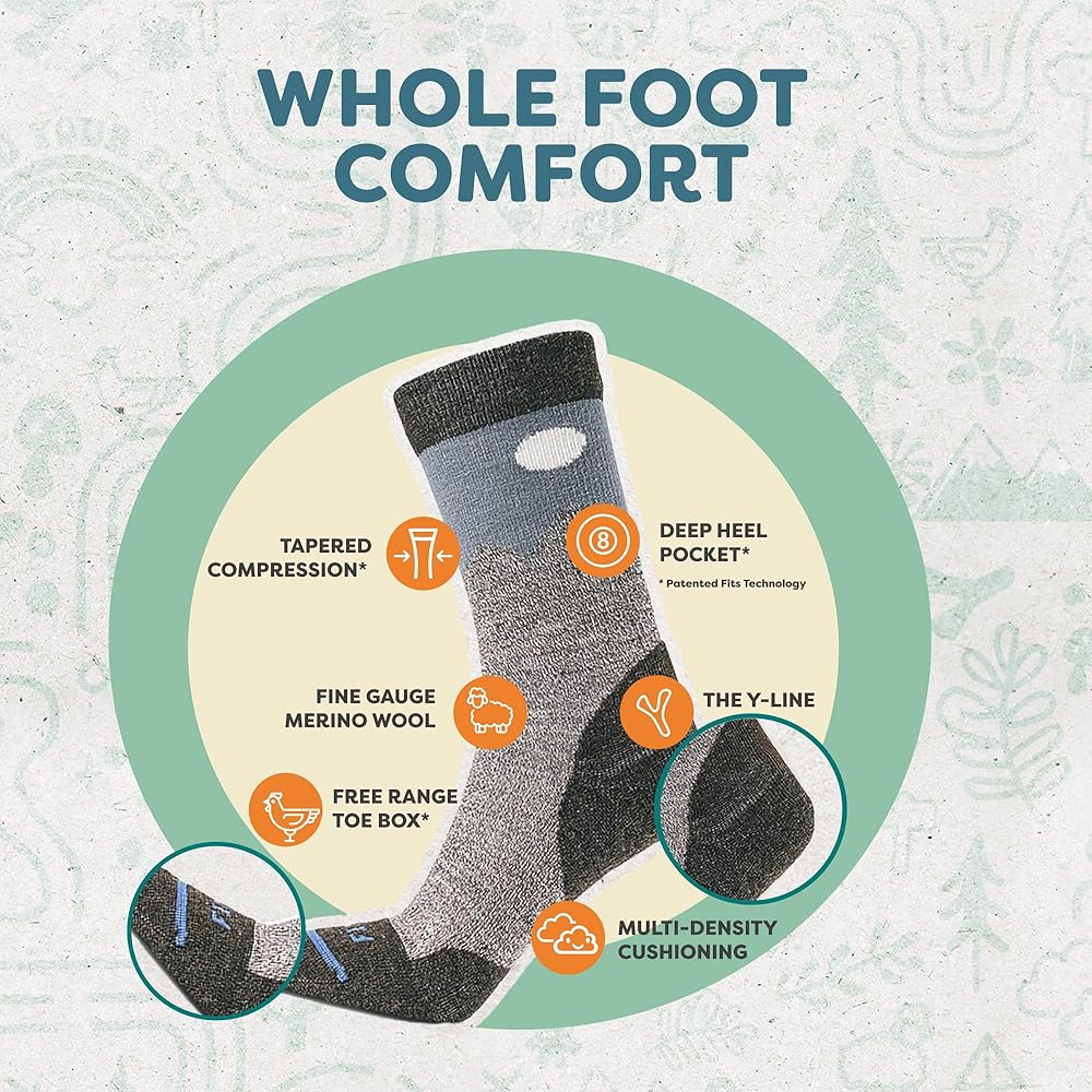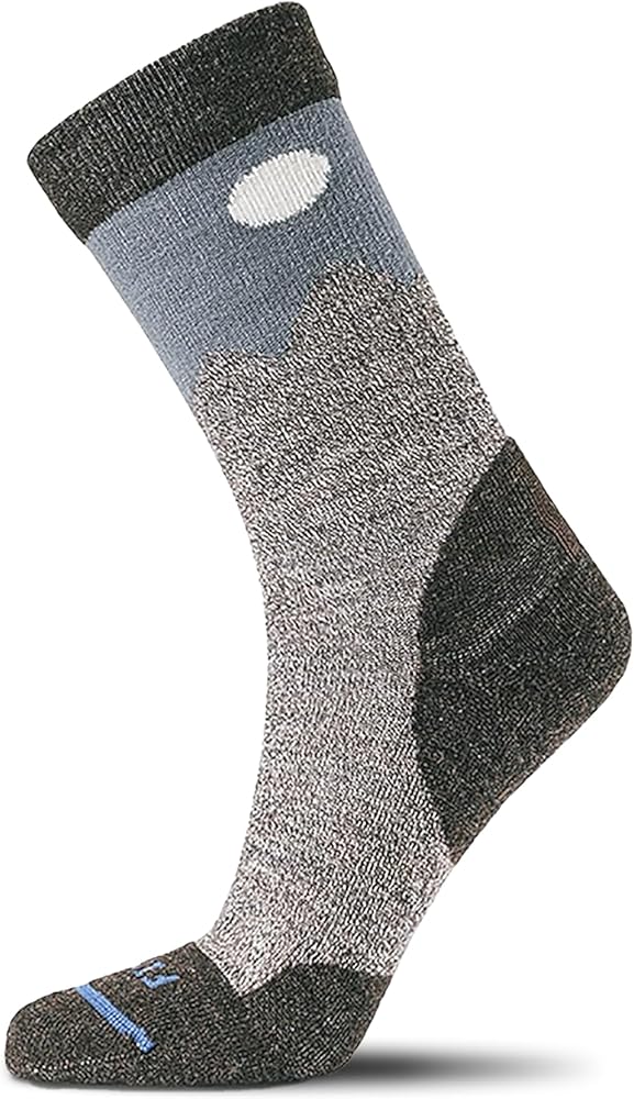 Our most popular wool hiking sockstyle, the Light Hiker, is cushioned under foot to take the pounding of an all-day hike while managing all the moisture you can throw at it. Now available in our popular Teton pattern! Our patented Full Contact Fit hugs the contours of your foot and stays put so there are no loose socks to rub you the wrong way. Crew height rises just below the calf. Extra cushioning in the heel, toe and the arch. Merino Wool 65% Nylon 27% Polyester 6% Lycra 2%