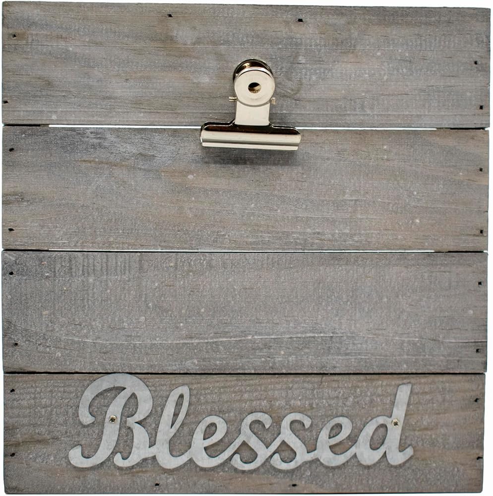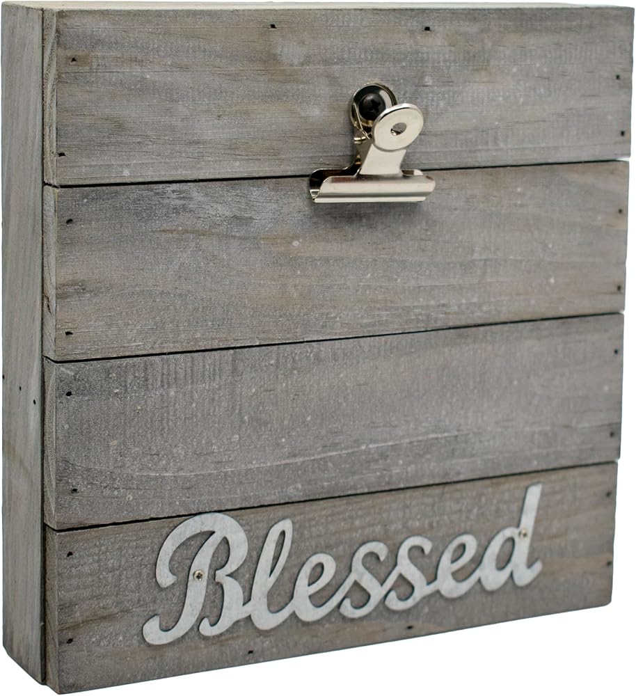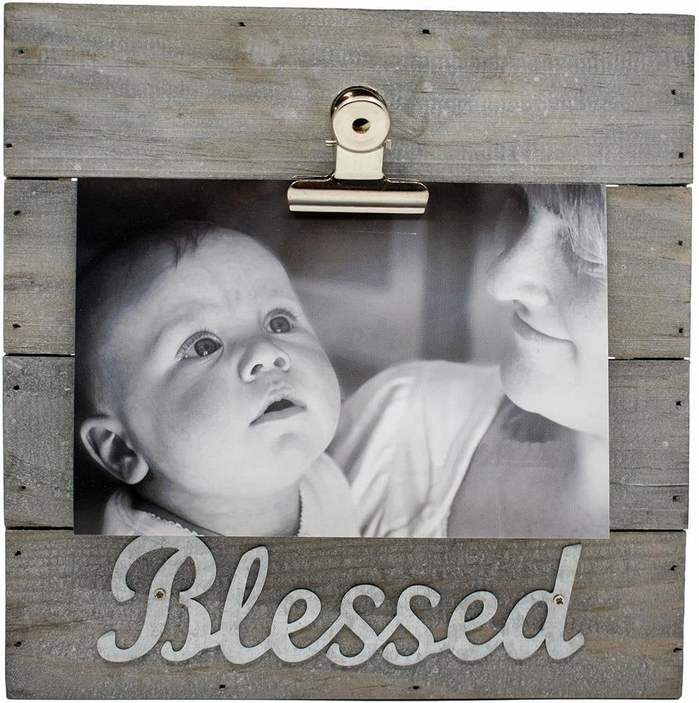 Measuring at 7.8" x 7.8" in its entirety, this frame is compact and perfect for displaying on desks, shelves, or walls. The clip is screwed into the top center of the frame while the stainless steel "Blessed" cutout is screwed into the bottom center of the frame, providing enough space in between both to hang a 4" X 6" or 5" X 7" photo.