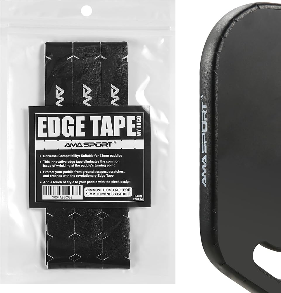 Protect your paddle with the original AMA SPORT pickleball edge guard tape! The edge tape armor protects your paddle's edge guard from scrapes, scratches and crashes. Keeps paddle edge looking new and prolongs paddle life. Our pickleball paddle edge guard tape comes in a variety of different looks, styles, and colors. Paddle up and gear up for battle, but don't forget your guard tape.