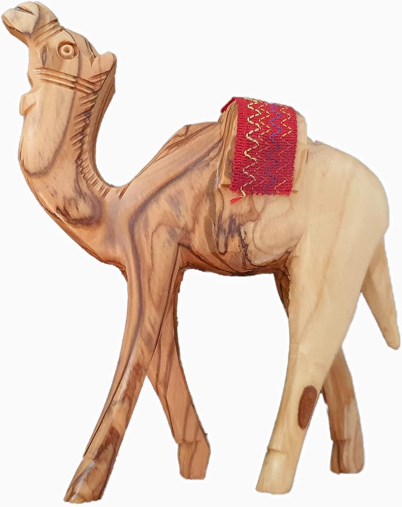 جمل من خشب الزيتون في القدس مع سرج بارتفاع 4.75 سم من بيت لحم