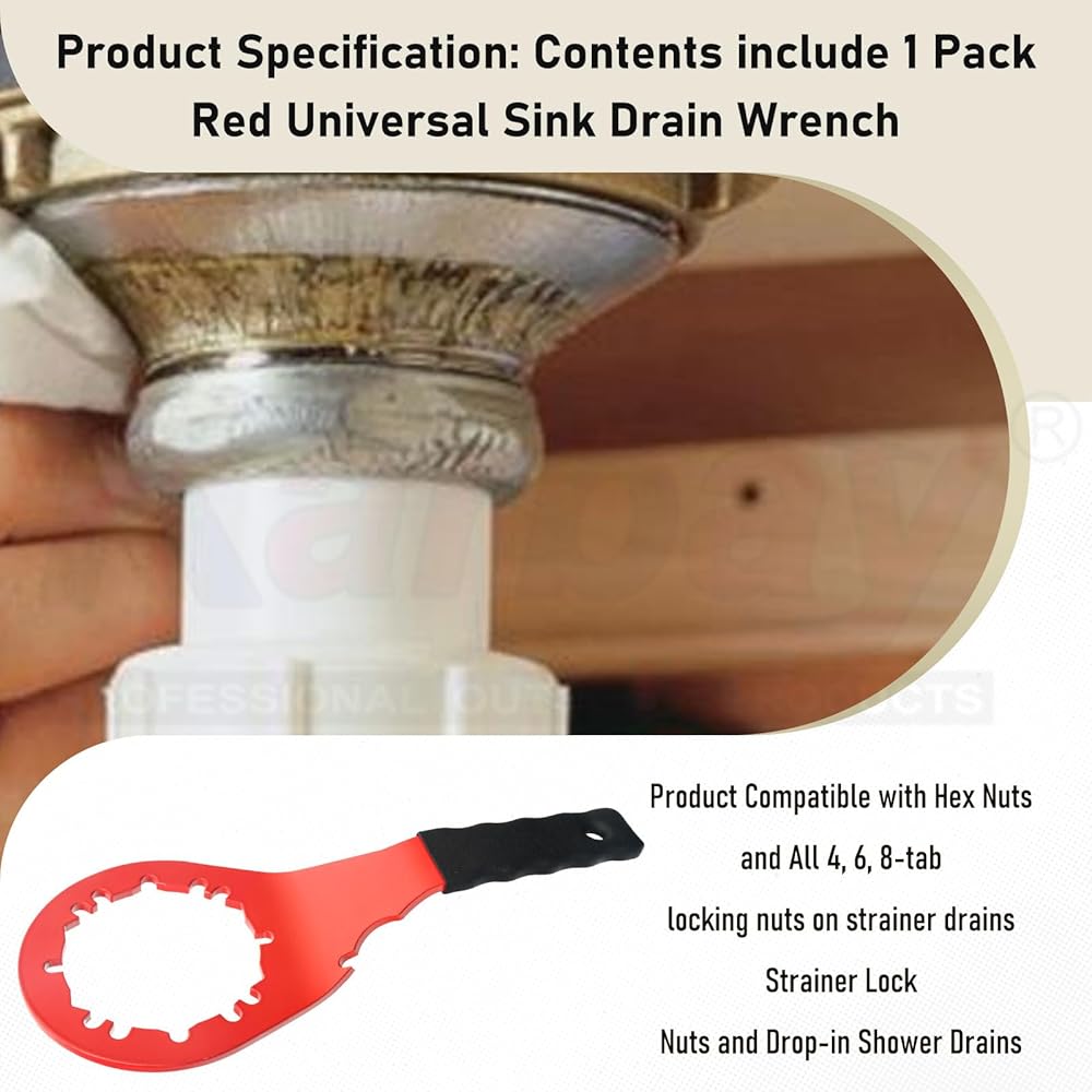 Product Specification: Contents include 1 Pack Red Universal Sink Drain Wrench