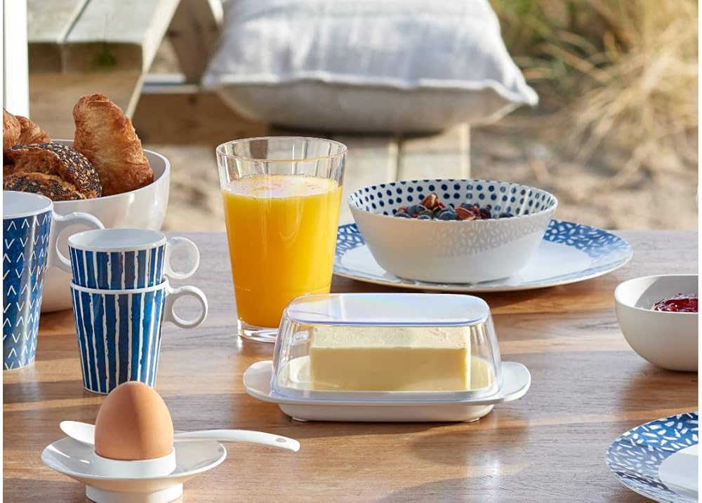 White butter dish with lid. Butter can be stored hygienically and neatly in this white butter dish from Mepal. This practical butter dish will look smart on your table during breakfast or lunch time. It is suitable for 250 grams of butter.