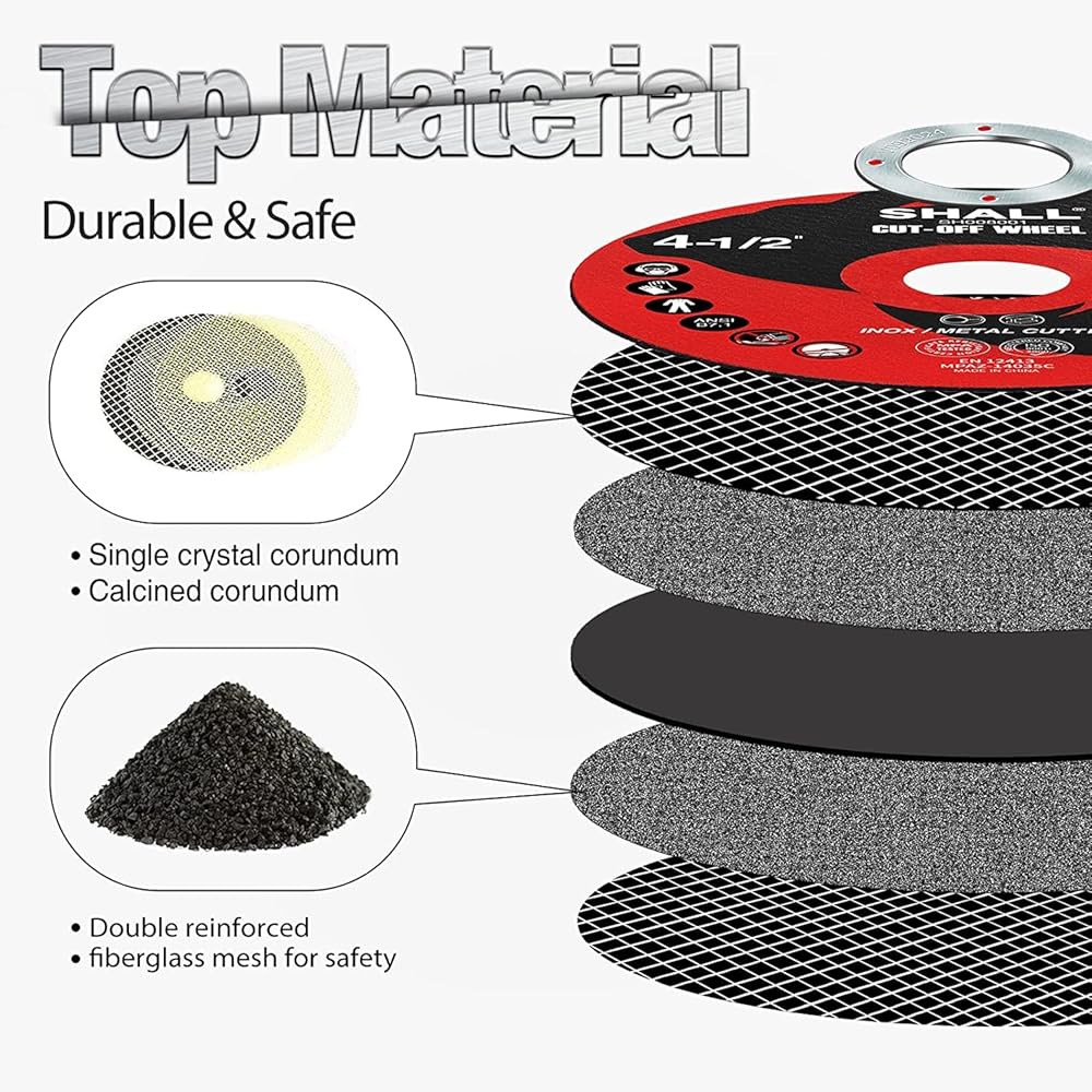 💿 [متانة وأمان فائقين] - العجلات المقطوعة مقاس 11.43 سم مصنوعة من اكسيد الالمونيوم الكريستالي المفرد طويل الأمد والقيمة وأكسيد الالمونيوم المكلس، وهي مصممة لعجلات مقطوعة أكثر قوة واقتصادية. شبكة الألياف الزجاجية المزدوجة المعززة وهيكلها المتوازن يجعل عجلات القطع هذه أكثر أمانًا.