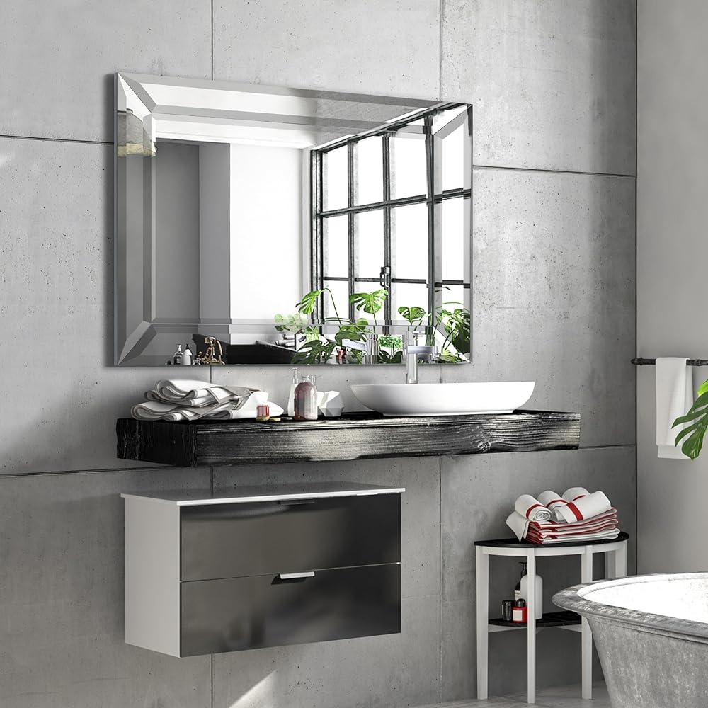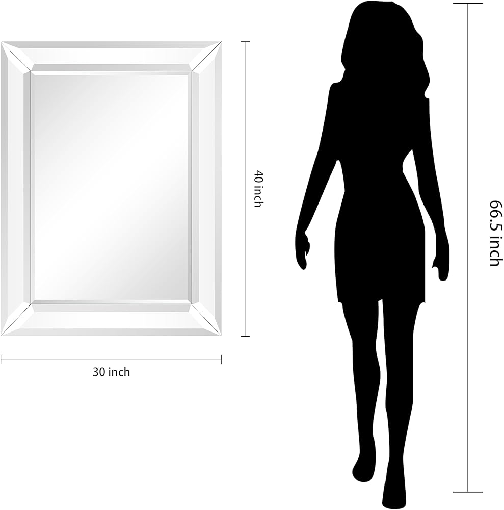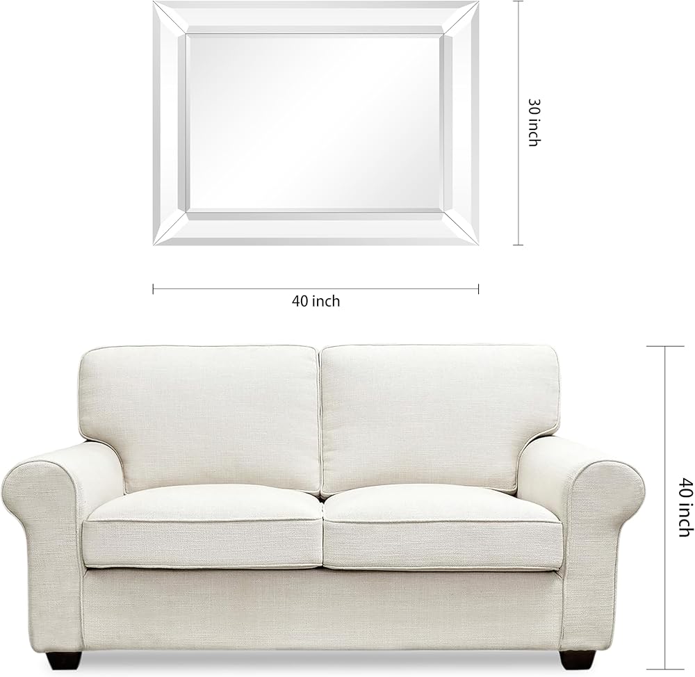 مرآة حائط بإطار فضي من Empire Art Direct مستطيلة الشكل، جاهزة للتعليق، غرفة المعيشة، غرفة النوم والمكتب، 40 بوصة × 30 بوصة × 2.1 بوصة