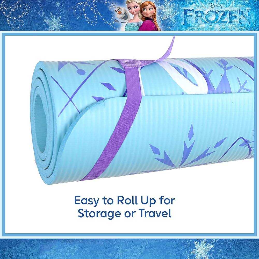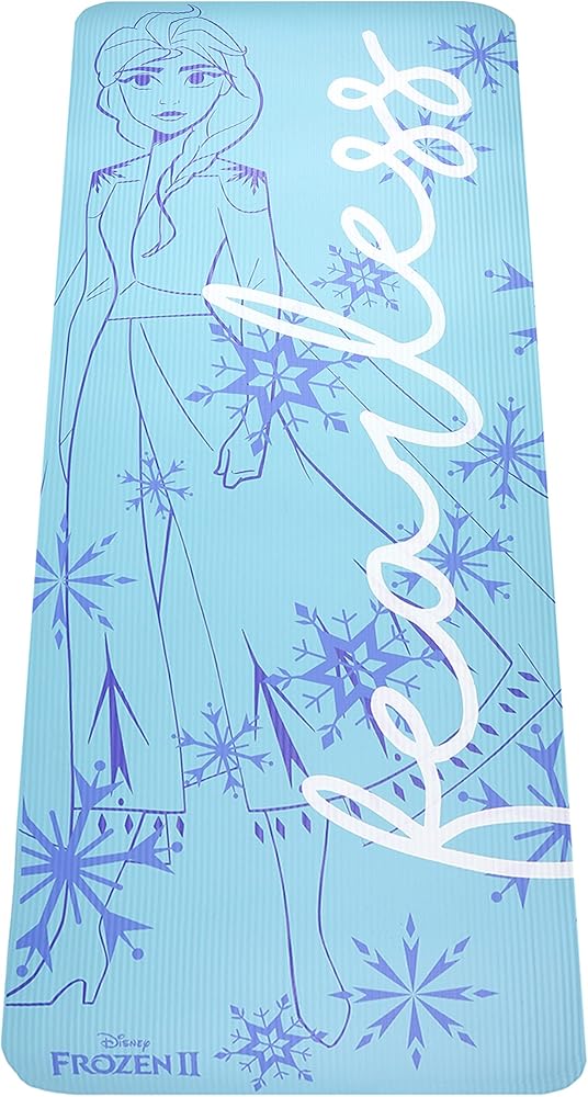 • FROZEN EXERCISE MAT: NBR folding fitness mat featuring a stylish Frozen 2 Princess Elsa printed design decorated with snowflakes and the word "Fearless," is perfect for practicing Pilates, stretching, floor based exercises, and much more; anti-fatigue mat cushions your back elbows hips and knees to provide comfort while lying and kneeling on hard floors