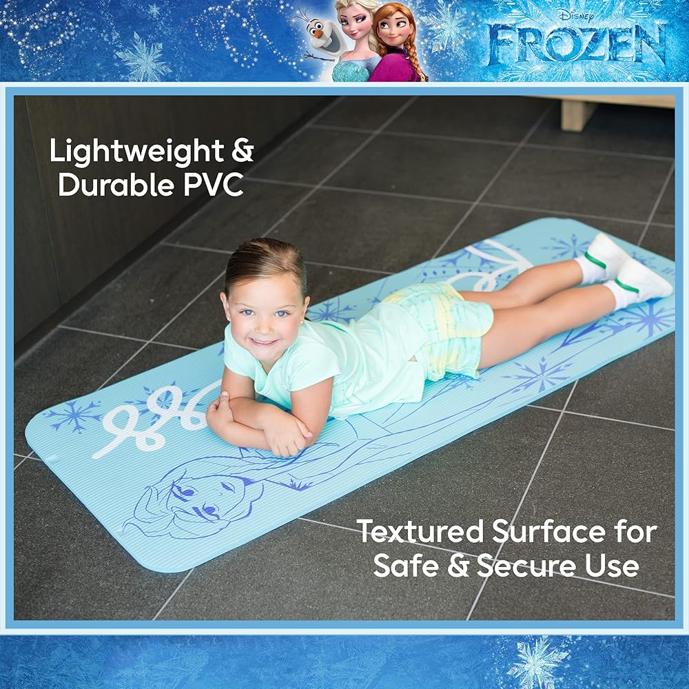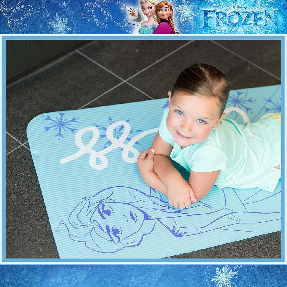 بساط تمرين ديزني فروزن إلسا للأطفال غير قابل للانزلاق، بساط NBR للياقة البدنية والتمرين لجميع الأغراض للأولاد والبنات، أزرق، 10 ملم