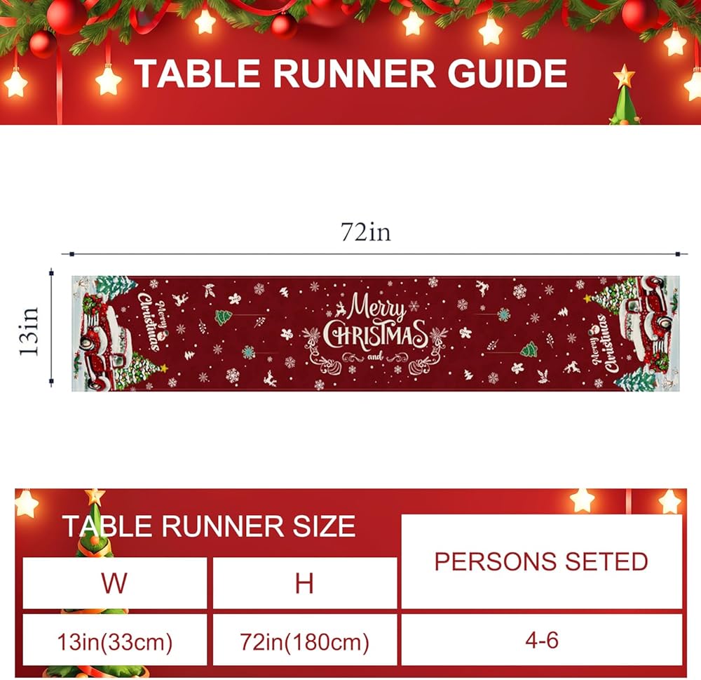 【يناسب مقاس الطاولة】مقاس ديكور الكريسماس هذا 13 × 72 بوصة، مناسب لطاولة يمكنها استيعاب 4-6 أشخاص. يضيف لمسة احتفالية إلى ديكور عيد الميلاد الخاص بك.