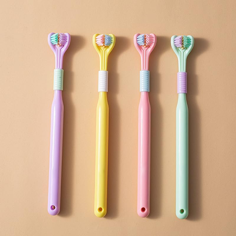 These soft hair toothbrushes offer an innovative three-sided design that makes brushing teeth more thorough and effective. With flexible bristles on all three sides that wrap around each tooth, you can be sure to reach every surface with each gentle stroke. The random color assortment means the whole family can keep their brushes straight. Specially tapered for precision cleaning between teeth and along the gumline, these manual toothbrushes are perfect for maintaining good oral hygiene at home. Their compact size also makes them ideal for travel. Help prevent cavities and brighten your smile with this 2-pack of multi-surface toothbrushes that are suitable for both adults and children alike.
