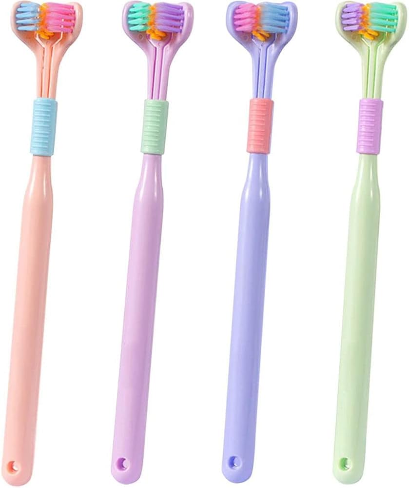 HEITIGN الصحة والجمال حزمة من 2 3 4 فرشاة أسنان ثلاثية الجوانب فرشاة أسنان ذات شعيرات ناعمة للبالغين على شكل حرف V فرشاة أسنان للتنظيف غير قابلة للانزلاق 24 * 16 * 4 سم (4 قطع)