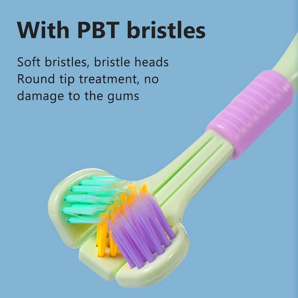 Soft : The of this three-sided toothbrush are made of PBT material. The bristle tip is smooth, the are soft, do not hurt the gums, the material is and odorless, the suitable bristle density brings a pleasant and easy cleaning experience, gentle, effective, thorough, and does not hurt the mouth, suitable for adults and children.