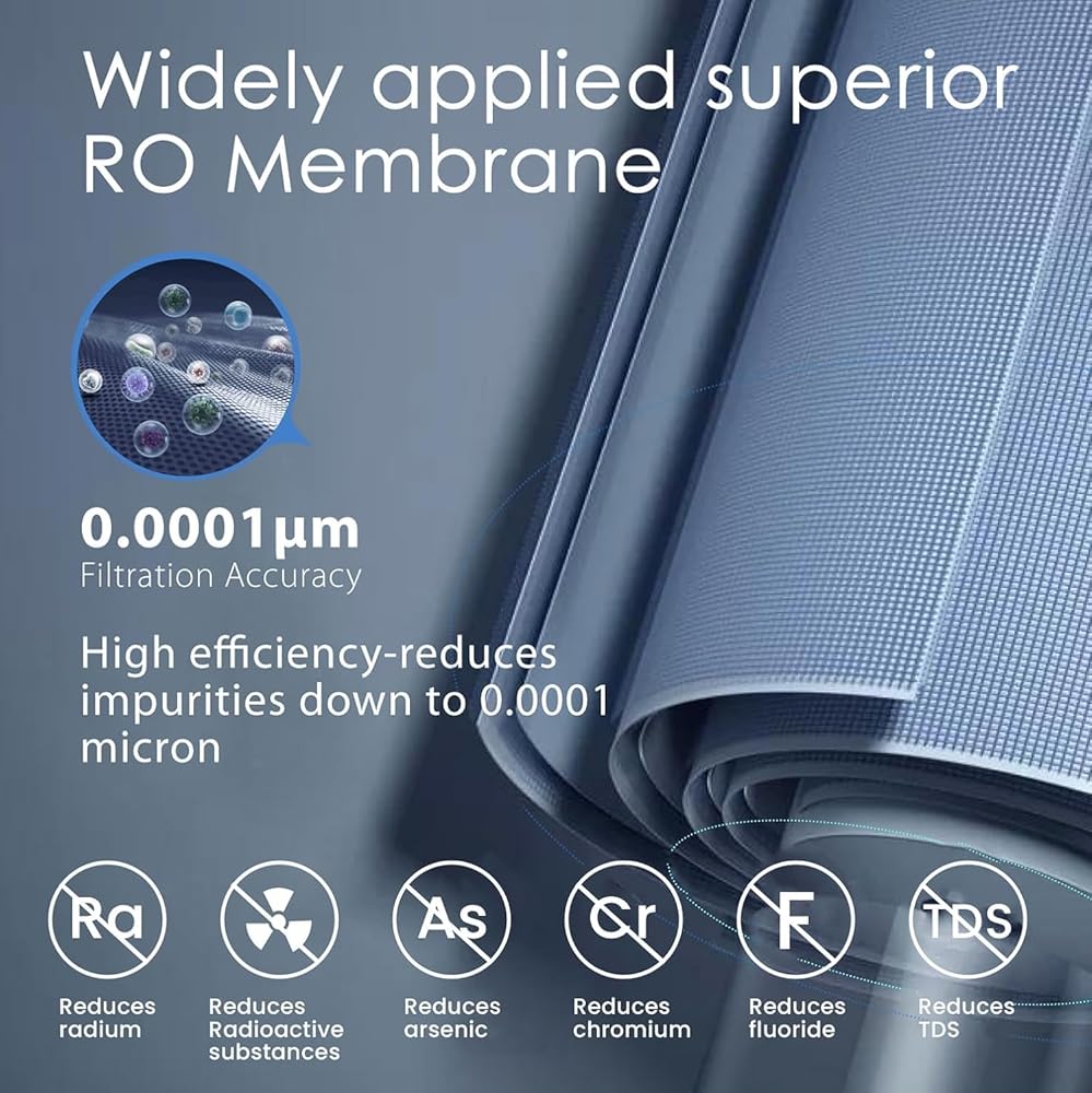 Certified by WQA to NSF/ANSI 372 Lead-Free standards, all components of this system are crafted from high-quality materials for maximum filtration. Filter life may vary based upon local water conditions or use patterns, but we recommend replacing sediment and carbon pre-filters every 6 months, the GAC filter once a year, and the membrane every 2 to 5 years.