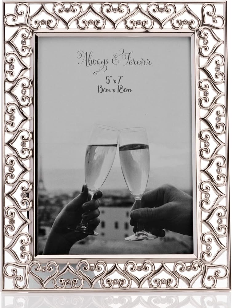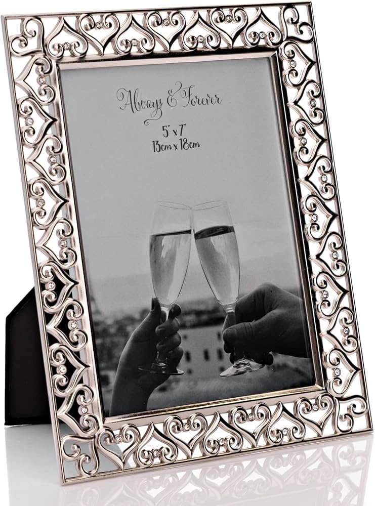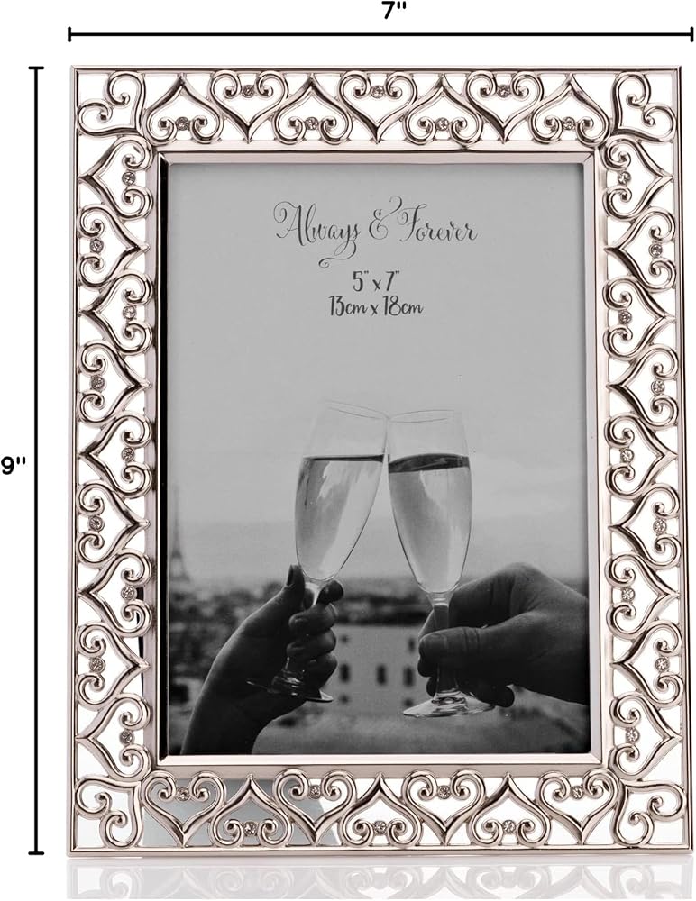 إطار صورة على شكل قلب مطلي بالفضة مقاس 5 × 7 بوصة