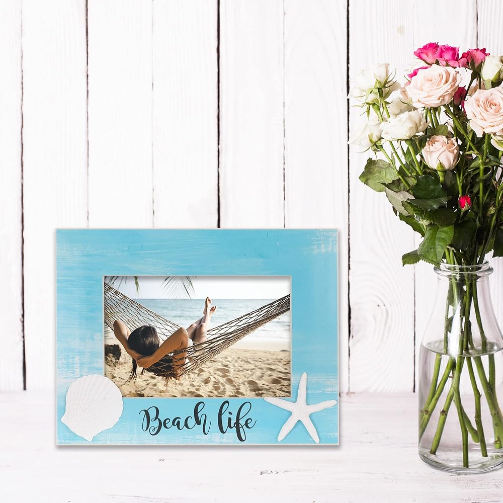 إطارات لورانس إطار صورة Beach Life مقاس 4x6 - تصميم صدفة، أزرق