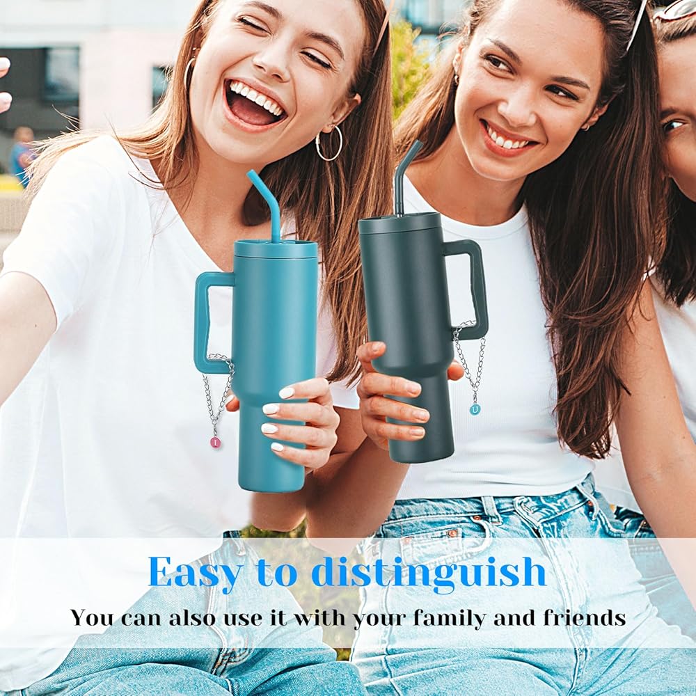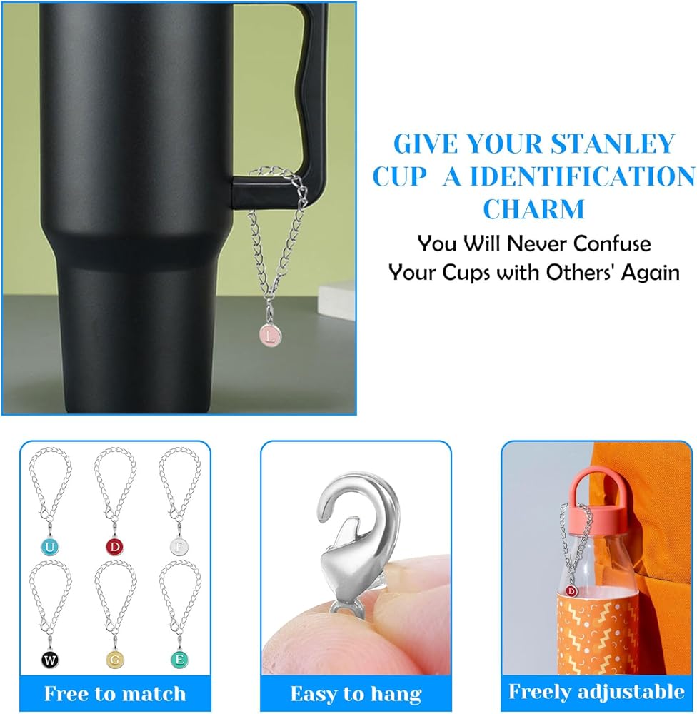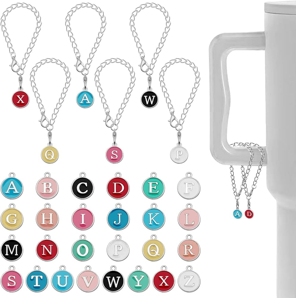 Letter Charm Accessories for Stanley Cup, 26pcs Name ID Initial Personalized Letter Charms with 6pcs Chains for Stanley Tumbler Water Bottle Charms for Handle Identification(Random Colors and Letter)