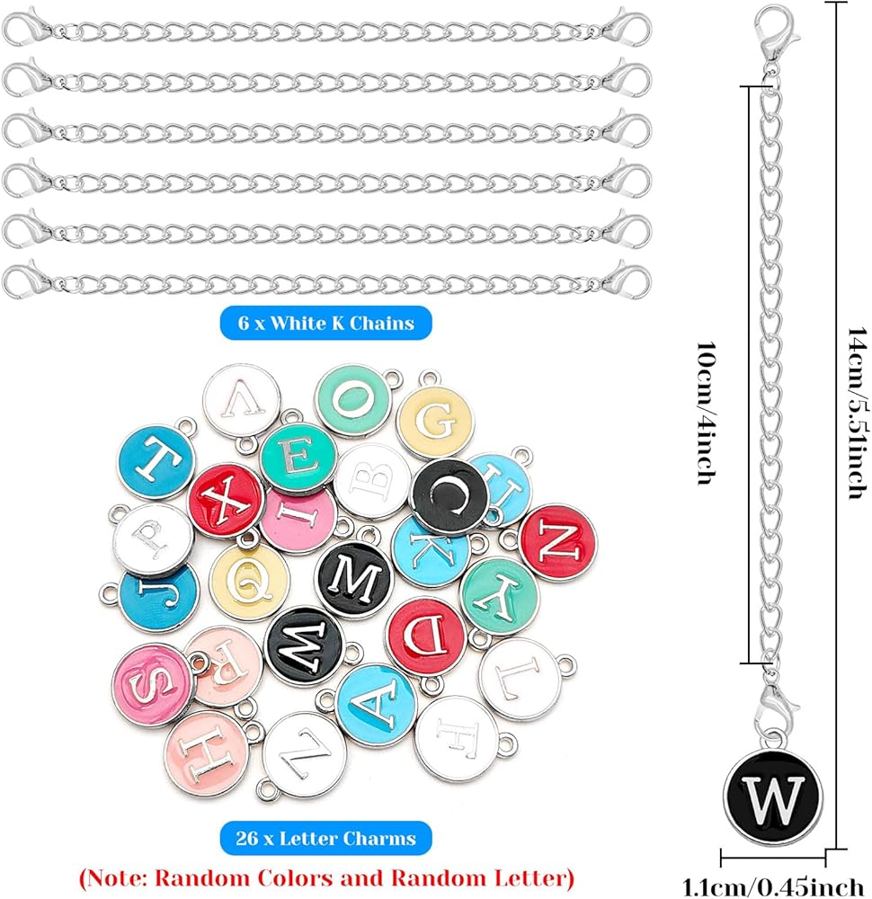 --These letter charm has multiple uses and can be easily attached to water bottles with handles, keychains, wallets, and school bag zippers, and can even be used as earrings or necklaces to fully show your imagination.