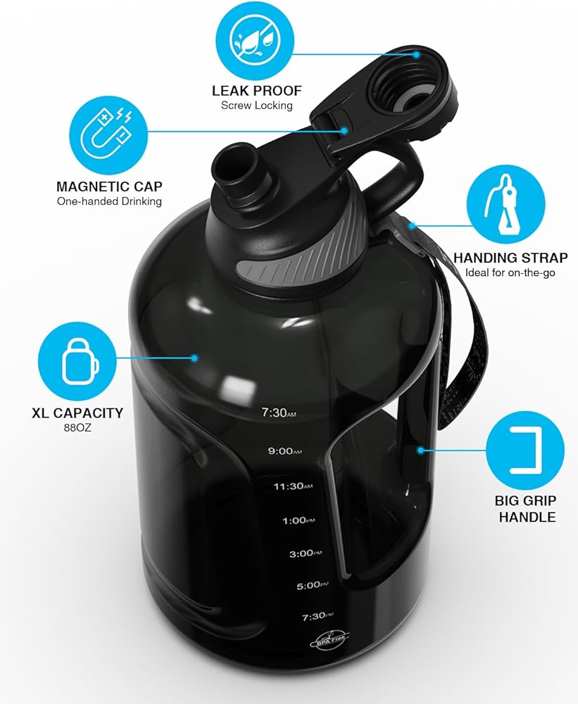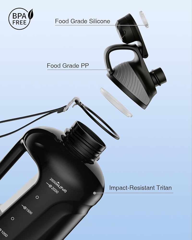 • حافظ على رطوبة جسمك طوال اليوم: زجاجة مياه JOYAMI Tritan بسعة 2600 مل/88 أونصة، مثالية للصالة الرياضية واللياقة البدنية والعمل والمشي لمسافات طويلة والرياضة.