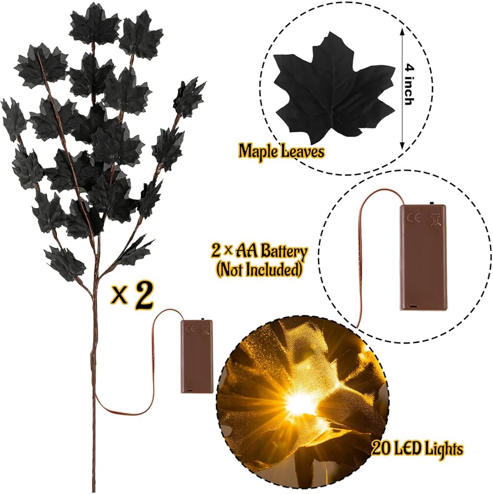 Black Maple Decor: Our maple leaf branch lights are black in color, classical in shape, which will bring your house a touch of horry and cool atmosphere in festival party or Halloween day